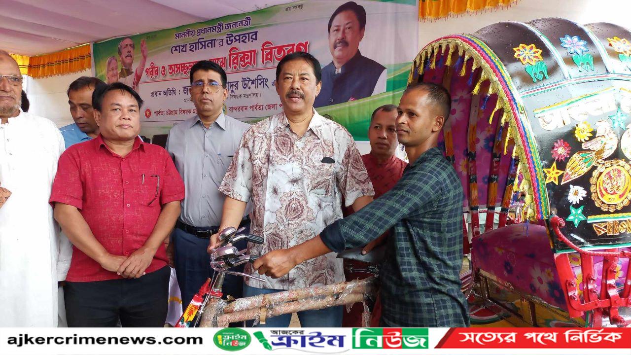 বান্দরবান জেলা সদরের ২০ জন গরীব ও অসচ্ছল ব্যক্তিকে শেখ হাসিনার উপহার হিসেবে প্রত্যেককে ১টি করে রিক্সা বিতরণ করেন পার্বত্য চট্টগ্রাম বিষয়ক মন্ত্রী বীর বাহাদুর উশৈসিং।