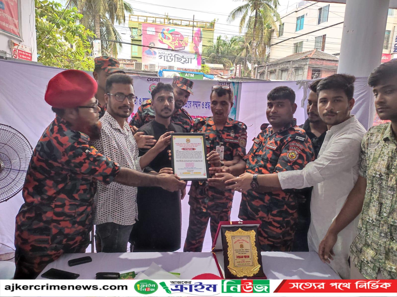 সোমবার (৩১ জুলাই) বিকেলে স্বেচ্ছাসেবী সামাজিক সংগঠন আমারই আগামীর বাংলাদেশ ও সোনার বাংলা ব্লাড ব্যাংক এর সদস্যরা সম্মাননা দেন।