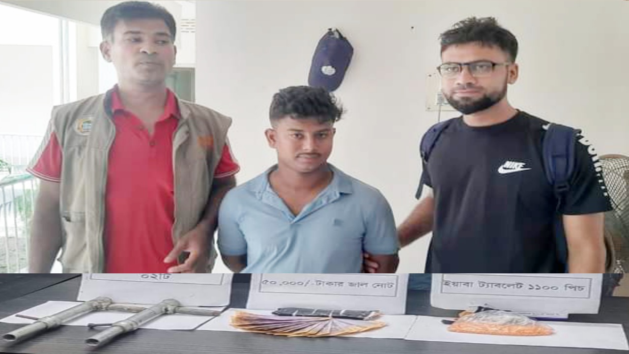 বরিশালের গৌরনদী এলাকা হইতে দুইটি দেশীয় তৈরি পাইপ গান, প্রতিটি এক হাজার টাকা মূল্য মানের মোট ৫০ হাজার টাকার জাল নোট ও ১১০০ পিস ইয়াবা ট্যাবলেট সহ একজনকে আটক করেছে বরিশাল জেলা পুলিশের গোয়েন্দা বিভাগ (ডিবি)। বরিশাল জেলার পুলিশ সুপার মোঃ ওয়াহিদুল ইসলাম, বিপিএম এঁর সার্বিক দিক নির্দেশনায়, অতিরিক্ত পুলিশ সুপার(প্রশাসন ও অর্থ) মোঃ শাহজাহান হোসেন, পিপিএম এবং ওসি ডিবি, বরিশাল মোহাম্মদ মিজানুর রহমান ও পরিদর্শক অসিম কুমার সিকদারের তত্ত্বাবধানে এসআই কাজী ওবায়দুল কবীরের নেতৃত্বে ডিবির একটি চৌকষ টিম গোপন সংবাদের ভিত্তিতে মঙ্গলবার, ১ আগষ্ট, ২০২৩ সকাল অনুমান ১১:০০ ঘটিকায় বরিশালের গৌরনদী থানাধীন চর গাধাতলী সাকিনে জনৈক আঃ রশিদ মাস্টারের মালিকানাধীন বাসার দোতলার পশ্চিম পাশের ফ্ল্যাটে অভিযান চালিয়ে ফ্ল্যাটের ভাড়াটিয়া দুলাল প্যাঁদা(২৮)'কে জিজ্ঞাসাবাদকালে একপর্যায়ে তার দেখানোমতে ফ্ল্যাটের ভেতরে রান্নাঘরের উপরের পূর্বপাশের তাকের উপর হতে উল্লেখিত ২টি দেশীয় তৈরী পাইপগান, কস্টেপ দ্বারা মোড়ানো একটি প্যাকেটে রক্ষিত বান্ডিলে ১০০০ টাকার ৫০টি জালনোট এবং ১১০০ পিস ইয়াবা ট্যাবলেট উদ্ধার হলে আসামী দুলাল পেদাকে আটক করা হয়। আটককৃত আসামী মাদারীপুর জেলার কালকিনি উপজেলার চর পালরদী গ্রামের স্থায়ী বাসিন্দা এবং মৃত হাফেজ পেদার ছেলে। সে গত ২ মাস ধরে এ বাসায় ভাড়াটিয়া হিসাবে অবস্থান করছিল বলে বাড়ীর মালিক পুলিশকে জানায়।পুলিশের ক্রাইম ডাটা রেকর্ড পর্যালোচনা করে উক্ত আসামীর বিরুদ্ধে ২০১৮ ইং সনের ১ টি মাদক মামলা, ২০১৯ ইং সনের ১ টি মাদক ও জাল টাকা উদ্ধারের ঘটণায় ১ টি বিশেষ ক্ষমতা আইনের মামলা বিচারাধীন রয়েছে মর্মে দেখা যায়। এ ঘটনায় ডিবি পুলিশের পক্ষ থেকে গৌরনদী থানায় অস্ত্র আইন, বিশেষ ক্ষমতা আইন এবং মাদক দ্রব্য নিয়ন্ত্রণ আইনে পৃথকভাবে তিনটি মামলা দায়ের করা হয়েছে।