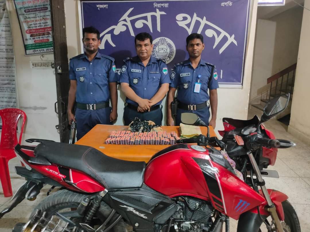 সোমবার বিকালে দর্শনা থানার নবাগত অফিসার ইনচার্জ বিপ্লব কুমার সাহা ও এসআই (নিঃ) খান আঃ রহমান সঙ্গীয় অফিসার ও ফোর্স পৌর এলাকার মোহাম্মমদপুর গ্রামে এক মাদক বিরোধী অভিযান চালায়।এসময় মোহাম্মদপুর গ্রামের মোঃ মিন্টু মিয়ার বাড়ীর নিচ তলার ভাড়াটিয়া ৪ মামলার পলাতক আসামী আব্দুর সালামের ছেলে চাদপুরের মোঃ মিলন হোসেনের (২৯) বাড়িতে অভিযান চালায়। মিলন ও তার স্ত্রী ফাতেমা পুলিশের উপস্থিতি টের পেয়ে ঘরে শুয়ে থাকা ঘুমন্ত মেয়েকে ফেলে রেখে পালিয়ে যায়।এসময় পুলিশ বাসার বারান্দা হতে ৬ লাখ টাকা মূল্যের ৪ হাজার পিস ট্যাপেন্টাডল ট্যাবলেট উদ্ধার করে। ঘটনাস্থলে ফেলে যাওয়া আসামীর ব্যবহৃত মোটরসাইকেল উদ্ধার করে। দর্শনা থানায় আসামী মিলনের বিরুদ্ধে মামলা রুজু করা হয়েছে।