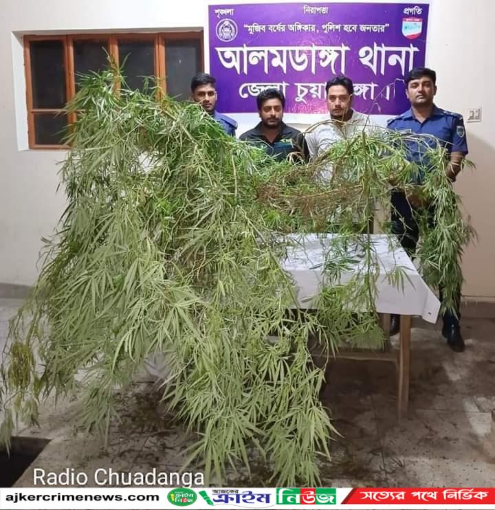 মাহমুদ হাসান রনি,চুয়াডাঙ্গা প্রতিনিধিঃ চুয়াডাঙ্গার আলমডাঙ্গার দুর্লভপুর গ্রামের করলা বাগান থেকে একটি ৮/১০ ফুট লম্বা গাঁজা গাছসহ দু'ভাইকে পুলিশ আটক করেছে ।