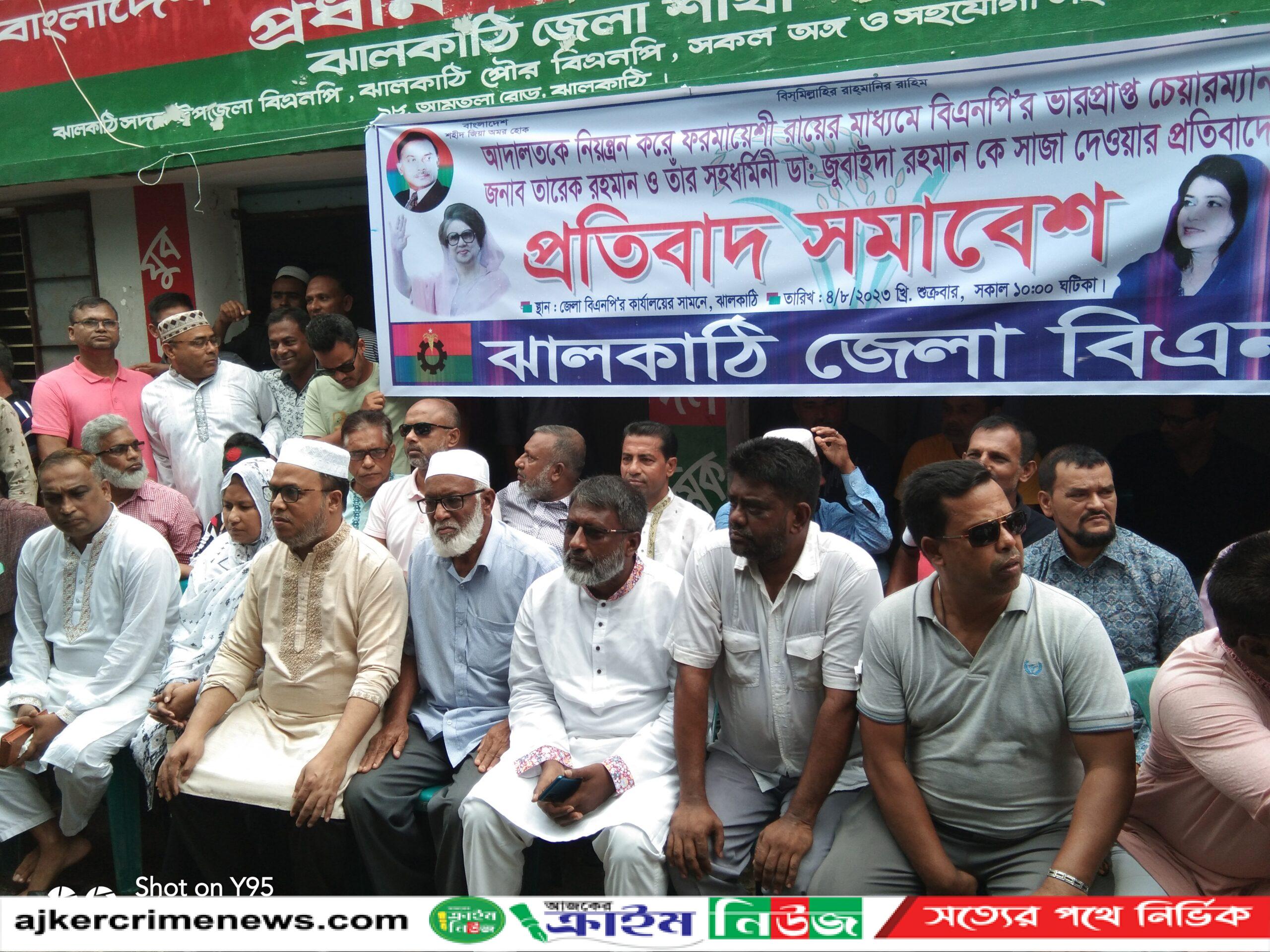 ঝালকাঠি প্রতিনিধি :ঝালকাঠিতে জেলা বিএনপি কার্যালয়ের সামনে জেলা বিএনপি'র উদ্যোগে কেন্দ্রীয় কর্মসূচীর অংশ হিসেবে গত ০২ আগস্ট ২০২৩ তারিখ দুদকের মামলায় বিএনপির ভারপ্রাপ্ত চেয়ারম্যান তারেক রহমান ও তার স্ত্রী ডাঃ জুবাইদা রহমানকে সাজা প্রদানের প্রতিবাদে ৪রা আগষ্ট শুক্রবার সকালে প্রতিবাদ সমাবেশ অনুষ্ঠিত হয়।