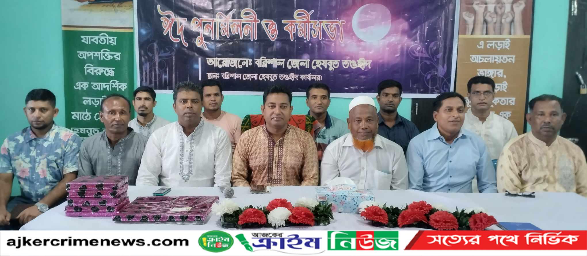 বরিশাল জেলা হেযবুত তওহীদের উদ্যোগে ঈদ পুনর্মিলনী ও কর্মীসভা অনুষ্ঠিত হয়েছে। আজ ৫ ই আগস্ট ২০২৩ ইং তারিখ শনিবার সকাল ১০ টায় বরিশাল জেলা হেযবুত তওহীদের কার্যালয়ে এই অনুষ্ঠানের আয়োজন করা হয়। বরিশাল জেলা হেযবুত তওহীদের সভাপতি মো: কবির মৃধার সভাপতিত্বে ও মহানগর শাখার নারী বিষয়ক সম্পাদক অনামিকা হক এর সঞ্চালনায় অনুষ্ঠানে প্রধান অতিথি হিসেবে উপস্থিত ছিলেন, হেযবুত তওহীদের বরিশাল বিভাগীয় আমির জনাব মো: আল আমিন সবুজ। প্রধান অতিথি বলেন, হেযবুত তওহীদ আন্দোলন বিগত ২৮ বছর যাবৎ উগ্রবাদ, সন্ত্রাসবাদ, ধর্ম ব্যবসা, ধর্ম নিয়ে অপরাজনীতি, জঙ্গিবাদ, হুজুগ, গুজব, ধর্মান্ধতা ও সাম্প্রদায়িকতাসহ যাবতীয় অন্যায়ের বিরুদ্ধে নি:স্বার্থভাবে কাজ করে যাচ্ছে। এই কাজ করতে গিয়ে আমরা সারা দেশে বিভিন্ন স্থানে উগ্রবাদী, সন্ত্রাসবাদী ও ধর্মব্যবসায়ীদের মিথ্যাচার ও হামলার শিকার হয়েছি কিন্তু আমাদের দেশ ও জাতির কল্যানে নিজেদেরকে উৎস্বর্গ করতে একটি দিনের জন্যও পিছপা হইনি। আমরা চাই যাবতীয় অন্যায়,অশান্তি দূর হয়ে মানবজীবনে ন্যায়, শান্তি এবং সুবিচার প্রতিষ্ঠিত হোক। মানুষের তৈরী জীবনব্যবস্থা আমাদেরকে শান্তি দিতে পারে নাই এটা প্রমানিত। যুগে যুগে আল্লাহর দেওয়া সত্য জীবনব্যবস্থা মানুষকে শান্তি দিয়েছে এটা ইতিহাস থেকে প্রমানিত। আমাদের সকলকে আল্লাহর হুকুমের উপরে ঐক্যবদ্ধ হওয়ার এখনই সময়।বিশেষ অতিথি হিসেবে উপস্থিত ছিলেন, বরিশাল মহানগর হেযবুত তওহীদের সভাপতি নূর মোহাম্মদ আরিফ, বাবুগঞ্জ উপজেলা সভাপতি গোলাম মহিউদ্দিন খান টিটু, গৌরনদী উপজেলা সভাপতি মো: কামাল শরীফ, বিমানবন্দর থানা সভাপতি মো: আমিনুল ইসলাম, পটুয়াখালী জেলা সভাপতি সাইফুর রহমান সাইফ, ফরিদপুর জেলা সভাপতি মাহবুবুল আলম নিক্কন, শরীয়তপুর জেলা সভাপতি মো: বায়েজিদ মালত, মাদারীপুর জেলা সভাপতি নূরনবী মাতুব্বর, বরিশাল জেলা নারী সম্পাদক খাদিজা রহমান মুন্নি, পটুয়াখালী জেলা নারী সম্পাদক জিউন্নাহার পলি, ফরিদপুর জেলা নারী সম্পাদক সুস্মিতা জামান প্রমূখ। অনুষ্ঠান শুরু হওয়ার পূর্বেই বরিশালের বিভিন্ন উপজেলা থেকে হেযবুত তওহীদের বিভিন্ন পর্যায়ের নেতা-কর্মীদের আগমনে হলরুম কানায় কানায় পূর্ন হয়ে যায়। শুরুতে পবিত্র কোরআন থেকে তেলওয়াত করা হয় এবং দলীয় সংগীত শোনার মাধ্যমে অনুষ্ঠানের মূল পর্ব শুরু হয়। অনুষ্ঠানটি সকাল ১০ টায় শুরু হয়ে জোহরের সালাহ্ কায়েম, দুপুরের খাবার বিরতির পর বিকেল ৫ ঘটিকায় সমাপ্ত হয়। অনুষ্ঠানকে কয়েকটি পর্বে ভাগ করে সাজানো হয়। প্রথম পর্বে অতিথিগণের বক্তব্য, দ্বিতীয় পর্বে সাংস্কৃতিক অনুষ্ঠান,পুরষ্কার বিতরণী এবং হেযবুত তওহীদের জেলা সভাপতির সমাপনী বক্তব্যের মাধ্যমে অনুষ্ঠানটি 