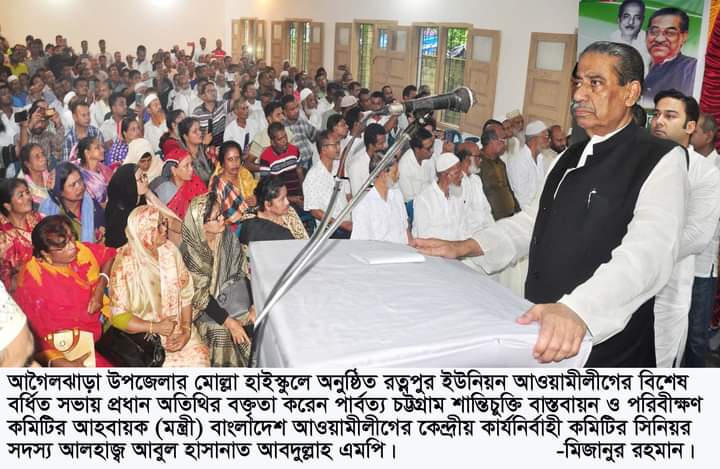 ওরা ’৭৫এর ১৫ আগস্ট জাতির পিতাকে হত্যার মাধ্যমে দেশ থেকে আওয়ামী লীগকে মুছে দিতে চেয়েছিল, কিন্ত তা পারেনি। ওই নৃশংস পৈচাশিক হত্যাকান্ডের পরে হত্যকারীদের বাঁচাতে ইনডেমিনিটি অধ্যাদেশ (কালো আইন) পাশ করে হত্যাকারীদের বিভিন্ন দূতাবাসে চাকুরী দিয়ে পুরস্কৃত করে সেদিন জাতির পিতার পরিবারের সাথে আমি আমার পিতা আব্দুর রব সেরনিয়াবাত,পুত্র সুকান্ত বাবুসহ স্বজনদের হারিয়েও কোন বিচার চাইতে পারিনি।সেই সময় কাটিয়ে জাতির পিতার সুযোগ্য কন্যা প্রধানমন্ত্রী শেখ হাসিনার নেতৃত্বে সেই আওয়ামী লীগ ঘুরে দাড়িয়েছে। জাতির পিতার হত্যাকারীদের বিচারের আওতায় আনা হয়েছে।একমাত্র শেখ হাসিনার হাতেই বাংলাদেশ নিরাপদ। আর তার হাত ধরেই দেশ আজ উন্নয়নের কাতারে দাড়িয়েছে।তাই জাতীয় এবং আন্তর্জাতিক পর্যায়ে আওয়ামী লীগের বিরুদ্ধে ষড়যন্ত্র হচ্ছে। সকল ষড়যন্ত্র রুখে দিতে ঐক্যবদ্ধ প্রয়োজন। ঐক্যবদ্ধ আওয়ামী লীগকে কেউ কোন দিন পরাস্ত করতে পারেনি আর পারবেও না। ৯ আগস্ট বুধবার বিকেলে উপজেলার রত্নপুর ইউনিয় আওয়ামী লীগের বিশেষ বর্ধিত সভায় প্রধান অতিথির বক্তব্যে এসব কথা বলেন জাতির পিতার ভাগ্নে, বরিশাল জেলা আওয়ামী লীগের সভাপতি, মন্ত্রী মর্যাদায় পার্বত্য শান্তি চুক্তি বাস্তবায়ন ও পরীবিক্ষণ কমিটির আহ্বায়ক ও বরিশাল-১ আসনের এমপি আলহাজ্ব আবুল হাসানাত আবদুল্লাহ। ৯ আগস্ট বুধবার বিকেলে মোল্লাপাড়া মাধ্যমিক বিদ্যালয় প্রাঙ্গনে উপজেলার রত্নপুর ইউনিয়ন আওয়ামী লীগের ভারপ্রাপ্ত সভাপতি ফরহাদ তালুকদার সভাপতিত্বে অনুষ্ঠিত সভায় অন্যান্যদের মধ্যে আরও বক্তব্য রাখেন বরিশাল জেলা আওয়ামী লীগের নির্বাহী সদস্য ও উপজেলা চেয়ারম্যান বীর মুক্তিযোদ্ধা আব্দুর রইচ সেরনিয়াবাত, উপজেলা আওয়ামী লীগের সভাপতি সুনীল কুমার বাড়ৈ,সাধারণ সম্পাদক আবু সালেহ মোঃ লিটন সেরনিয়াবাত, উপজেলা আওয়ামী লীগের সহ-সভাপতি ও রত্নপুর ইউপি চেয়ারম্যান গোলাম মোস্তফা সরদার।সভায় উপস্থিত ছিলেন মন্ত্রীর একান্ত সচিব খায়রুল বশার, বরিশাল জেলা আওয়ামী লীগের অন্যতম নির্বাহী সদস্য সেরনিয়াবাত আশিক আবদুল্লাহ,জেলা পরিষদ সদস্য পেয়ারা ফারুক বক্তিয়ার, উপজেলা মহিলা আওয়ামী লীগ সভানেত্রী ও ভাইস চেয়ারম্যান মলিনা রানী রায়সহ প্রমুখ নেতৃবৃন্দ।সভায় আগামী জাতীয় সংসদ নির্বাচনে দলের সকল পর্যায়ের নেতা কর্মীদের ঐক্যবদ্ধভাবে কাজের মাধ্যমে নৌকা প্রতীকের প্রার্থী জাতির পিতার ভাগ্নে, সাবেক চীপ হুইপ আলহাজ্ব আবুল হাসানাত আবদুল্লাহ এমপি’কে পুণঃরায় বিজয়ী করার মাধ্যমে শেখ হাসিনার হাতকে শক্তিশালি করার দৃঢ় সংকল্প ব্যক্ত করেন নেতা কর্মীরা।সভায় উপজেলা আওয়ামী লীগ নেতৃবৃন্দ, সহযোগী সংগঠনের সভাপতি, সাধারণ 