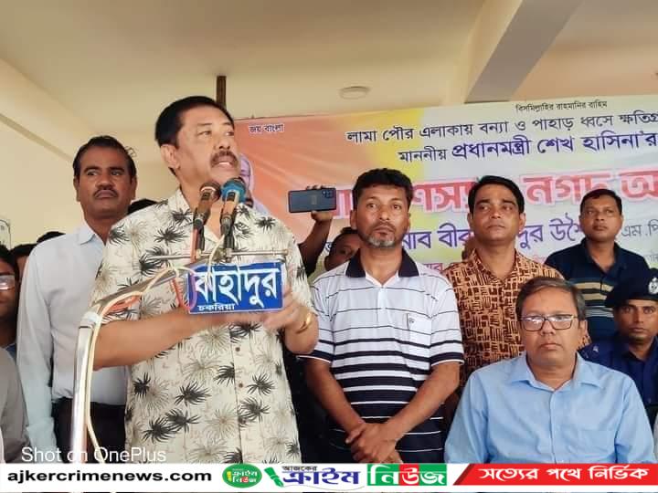 লামা পৌরসভার উদ্যোগে পার্বত্য চট্টগ্রামবিষয়ক মন্ত্রণালয় ও জেলা পরিষদ কর্তৃক প্রদত্ত ত্রাণ সহায়তা অনুষ্ঠানে মন্ত্রী বীর বাহাদুর সবাইকে ধৈর্যশীল হয়ে মহান সৃষ্টিকর্তাকে স্মরণ করার আহ্বান জানান।
