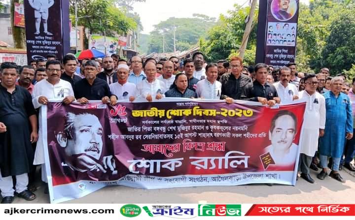 জাতির পিতা বঙ্গবন্ধু শেখ মুজিবুর রহমানসহ ১৫আগস্ট হত্যা কান্ডের মাস্টার মাইন্ড সাবেক রাস্ট্রপতি জিয়াউর রহমানের মরেনোত্তর বিচারের দাবি জানিয়ে বরিশালের আগৈলঝাড়ায় আওয়ামী লীগ ও প্রশাসনের উদ্যোগে যথাযোগ্য মর্যাদায় বিস্তারিত কর্মসূচী পালনের মধ্যদিয়ে ১৫আগষ্ট ৪৮তম জাতীয় শোক দিবস মঙ্গলবার পালিত হয়েছে।জাতীয় শোক দিবস পালন উপলক্ষে উপজেলা আওয়ামী লীগ ও সহযোগী সংগঠনের উদ্যোগে মাসব্যাপি কোরান খতম শেষে ১৫ আগস্ট মঙ্গলবার সকালে সরকারী শহীদ আব্দুর রব সেরনিয়াবাত ডিগ্রী কলেজ মাঠে জাতীয়, শোক পতাকা ও সাংগঠনিক পতাকা উত্তোলনের মধ্য দিয়ে দিবসের কার্যক্রম শুরু হয়। এরপরে জাতির পিতা বঙ্গবন্ধু শেখ মুজিবুর রহমান, সাবেক মন্ত্রী, কৃষক লীগের প্রতিষ্ঠাতা শহীদ আব্দুর রব সেরনিয়াবাতের প্রতিকৃতিতে শ্রদ্ধাঞ্জলী নিবেদন শেষে ১৫আগষ্ট মঙ্গলবার সকল শহীদদের আত্মার মাগফিরাত কামনায় নীরবতা পালন, কালো ব্যাজ ধারণ ও শোক র্যলী অনুষ্ঠিত হয়। শোক র্যালী শেষে সরকারী শহীদ আব্দুর রব সেরনিয়াবাত ডিগ্রী কলেজ মাঠে উপজেলা আওয়ামী লীগ সভাপতি সুনীল কুমার বাড়ৈর সভাপতিত্বে উপজেলা আওয়ামী লীগের প্রচার ও প্রকাশনা সম্পাদক ফরহাদ তালুকদারের সঞ্চালনায় দিবসের তাৎপর্য তুলে ধরে আলোচনা সভায় বক্তব্য রাখেন বরিশাল জেলা আওয়ামী লীগ নির্বাহী সদস্য ও উপজেলা চেয়ারম্যান বীর মুক্তিযোদ্ধা আব্দুর রইচ সেরনিয়াবাত, উপজেলা আওয়ামী লীগ সাধারণ সম্পাদক আবু সালেহ মোঃ লিটন সেরনিয়াবাতসহ অন্যন্য নেতৃবৃন্দ। আলোচনা সভা শেষে ১৫আগষ্ট ঘাতকের বুলেটে জাতির পিতাসহ সকল শহীদদের আত্মার মাগফিরাত কামনায় বাদ যোহর উপজেলা কেন্দ্রীয় জামে মসজিরে পেশ ইমাম হাফেজ মাওলানা মোঃ ফজলুল হকসহ অন্যান্য হাফেজদের পরিচালনায় দোয়া-মোনাজাত শেষে কলেজ মাঠে তবারক বিতরণ করা হয়।দোয়া-মোনাজাতে উপজেলা আওয়ামী লীগসহ অন্যান্য সহযোগী সংগঠনের সকল পর্যায়ের নেতা-কর্মীরা উপস্থিত ছিলেন। একই দিন বাদ আছর উপজেলার সেরাল গ্রামে শহীদ আব্দুর রব সেরনিয়াবাতের বাস ভবনে বরিশাল জেলা কৃষক লীগের উদ্যোগে মরহুমের রুহের মাগফিরাত কামনা করে দোয়া-মিলাদ অনুষ্ঠিত হয়েছে।দোয়া মিলাদে শহীদ আব্দুর রব সেরনিয়াবাতের পুত্র মন্ত্রী মর্যাদায় পার্বত্য শান্তি চুক্তি বাস্তবায়ন ও পরীবিক্ষন কমিটির আহ্বায়ক আলহাজ্ব আবুল হাসানাত আবদুল্লাহ এমপি, মরহুমের পরিবার স্বজনেরা ও জেলা কৃষক লীগের নেতৃবৃন্দরা উপস্থিত ছিলেন। অন্যদিকে উপজেলা প্রশাসনের উদ্যোগে একই দিন সকালে জাতির পিতার প্রতিকৃতিতে শ্রদ্ধা নিবেদন, চিত্রাংকন প্রতিযোগীতা ও শহীদ সুকান্ত আবদুল্লাহ হল রুমে উপজেলা নির্বাহী অফিসার মোঃ সাখাওয়াত হোসেনের সভাপতিত্বে আলোচনা সভা অনুষ্ঠিত হয