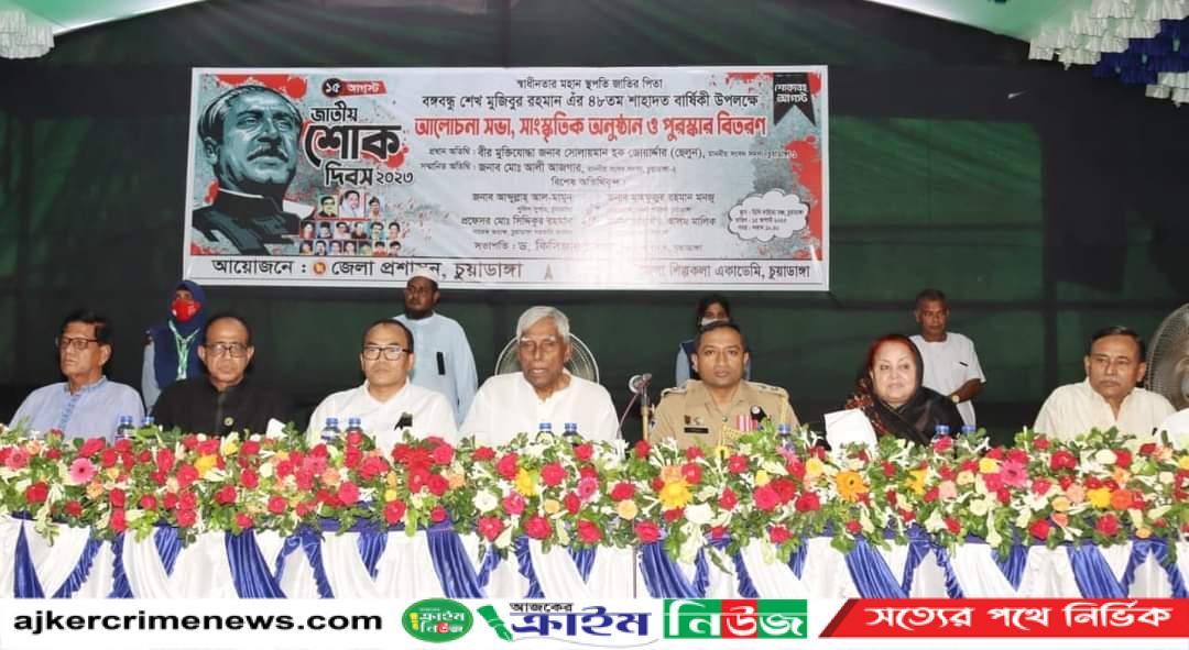 মাহমুদ হাসান রনি, চুয়াডাঙ্গা প্রতিনিধি ঃ চুয়াডাঙ্গায় স্বাধীনতার মহান স্থপতি জাতির পিতা বঙ্গবন্ধু শেখ মুজিবুর রহমান-এঁর ৪৮তম শাহাদত বার্ষিকী উপলক্ষে ডিসি সাহিত্য মঞ্চে জেলা প্রশাসনের উদ্যোগে আলোচনা সভা, সাংস্কৃতিক অনুষ্ঠান ও পুরস্কার বিতরণের অনুষ্ঠান অনুষ্ঠিত হয়েছে।