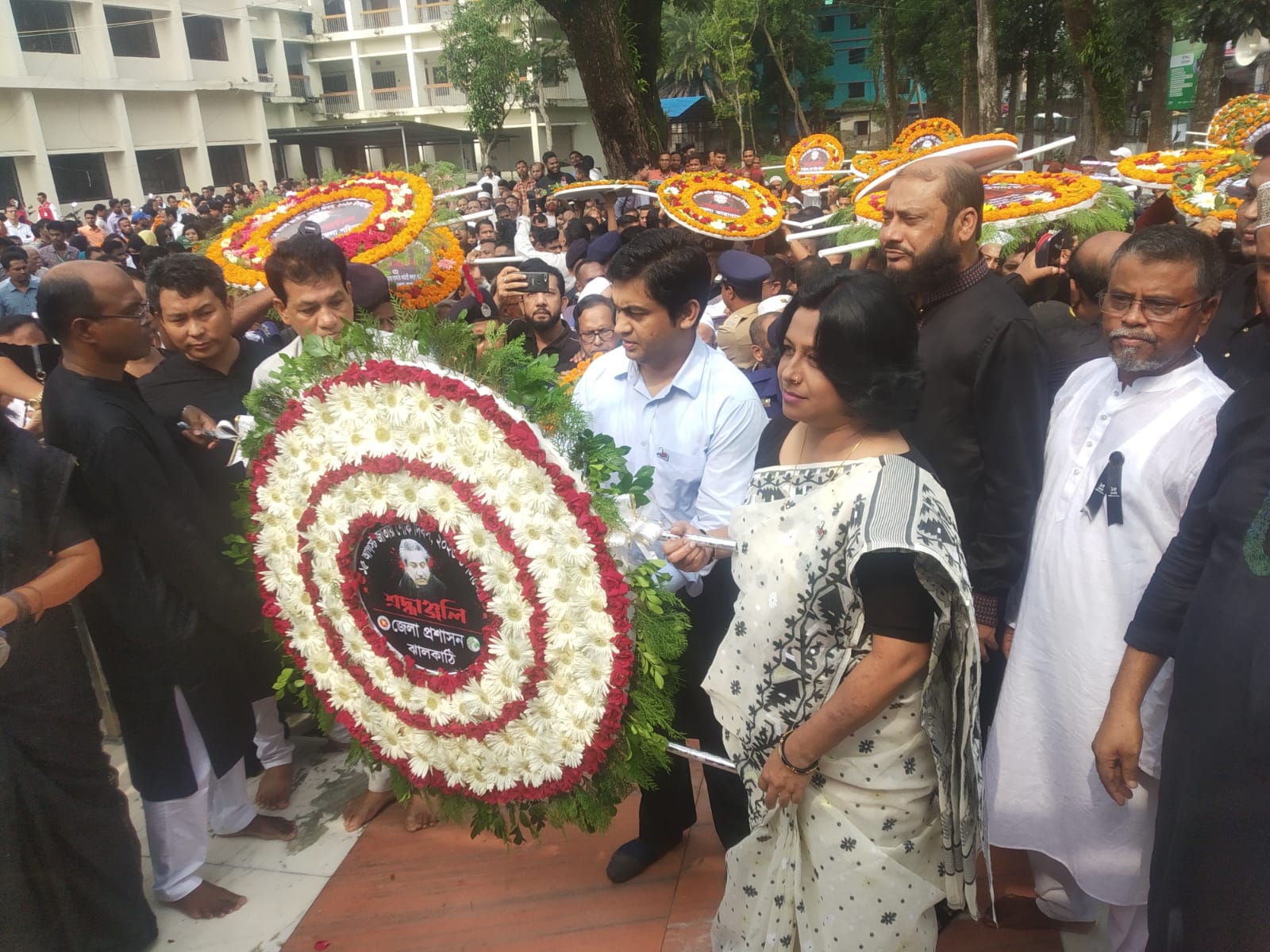 এ সময় জেলা প্রশাসন, পুলিশ সুপার, সরকারী বেসরকারী বিভিন্ন দপ্তরসহ জেলা আওয়ামী ও সহযোগী সংগঠন বঙ্গবন্ধুর প্রতিকৃতিতে ফুল দিয়ে শ্রদ্ধা জ্ঞাপন করেন।