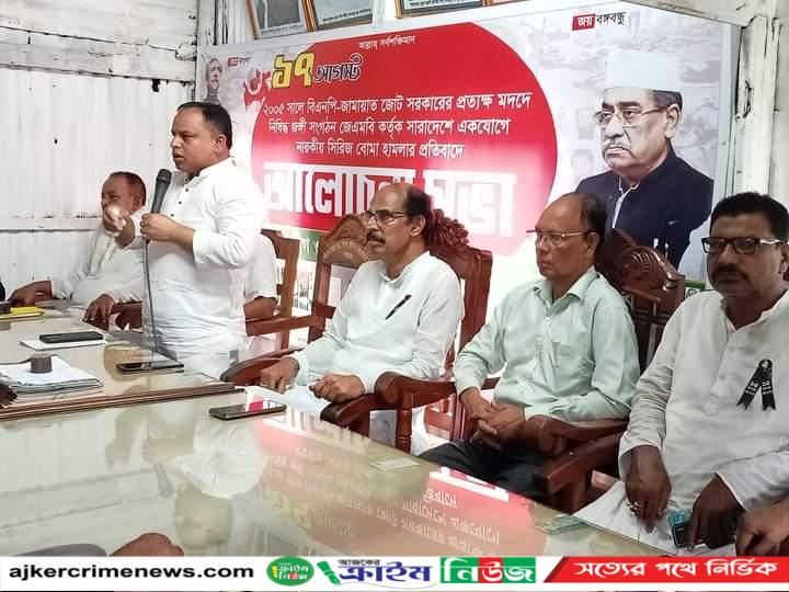 বিএনপি-জামাত সকারের মদদে দেশব্যাপি সিরিজ বোমা হামলার প্রতিবাদে বরিশালের আগৈলঝাড়ায় উপজেলা আওয়ামী লীগ ও সহযোগী সংগঠনের উদ্যোগে প্রতিবাদ সমাবেশ অনুষ্ঠিত হয়েছে।১৭ আগস্ট বৃহস্পতিবার এসএসসি ও সমমানের পরীক্ষা শুরু হওয়ায় বিক্ষোভ মিছিল স্থগিত রেখে সকাল এগারোটায় উপজেলা আওয়ামী লীগ কার্যালয়ে উপজেলা সভাপতি সুনীল কুমার বাড়ৈর সভাপতিত্বে বক্তব্য রাখেন বরিশাল জেলা আওয়ামী লীগ নেতা ও উপজেলা চেয়ারম্যান বীর মুক্তিযোদ্ধা আব্দুর রইচ সেরনিয়াবাত, উপজেলা আওয়ামী লীগ সাধারণ সম্পাদক আবু সালেহ মোঃ লিটন সেরনিয়াবাত। প্রচার ও প্রকাশনা সম্পাদক ফরহাদ হোসেন তালুকদারের সঞ্চালনায় অন্যান্যদের মধ্যে আরও বক্তব্য রাখেন আওয়ামী লীগ নেতা আবুল বাশার হাওলাদার, জসীম সরদার, ইলিয়াস তালুকদার, হালিমুজ্জামান হালিম, স্বেচ্ছাসেবক লীগে সভাপতি ফিরোজ সিকদার, ছাত্রলীগ সভাপতি মিন্টু সেরনিয়াবাত।প্রতিবাদ সভায় উপজেলা আওয়ামী লীগ ও সহযোগী সংগঠনের নেতৃবৃন্দসহ পাঁচটি ইউনিয়নের সভাপতি ও সাধারণ সম্পাদকগনসহ দলের বিভিন্ন পর্যায়ের নেতা কর্মীরা উপস্থিত ছিলেন।প্রতিবাদ সমাবেশে আবু সালেহ মোঃ লিটন সেরনিয়াবাত তার বক্তব্যে বলেন- ২০০৫ সালের ১৭ আগস্ট তৎকালণি বিএনপি-জামাত জোট সরকারের প্রচ্ছন্ন মদদে নিষিদ্ধ ঘোষিত স্বাধীনতা বিরোধী জেএমবি’র সন্ত্রাসী জঙ্গী গোষ্টি দেশের আদতালত প্রাঙ্গনসহ সারা দেশে একযোগে ৬৩টি জেলার ৫শ স্পটে বোমা হামলা চালিয়েছিল।ওই ঘটনায় সারা দেশে ১৪৯টি মামলা দায়ের হয়েছিল। ওই সকল মামলায় এক হাজার জঙ্গি সনাক্ত করা হলে তার মধ্যে মাত্র ৩শ জঙ্গি বিচারের আওতায় এসেছে।নিহতদের স্মরণ, জড়িতদের বিচারের দাবি জানিয়ে জামাত বিএনপি’র বিভিন্ন গুজব ও মিথ্যা তথ্য ছড়ানোর প্রতিবাদ জানাতে সকল নেতা কর্মীদের আহ্বান জানান।স্বাধীনতা বিরোধীরা বার বার শোকের মাস আগস্টকে তাদের টার্গেট হিসেবে বেছে নেয়।তাই দলের সকল নেতাকর্মীকে ঐক্যবদ্ধ থেকে আওয়ামী লীগকে শক্তিশালী করার আহ্বান জানিয়ে ওই বোমা হামলায় নিহতদের রুহের মাগফিরাত কামনা ও আহতদের দ্রুত সুস্থতা কামনায় কামনা করেন।