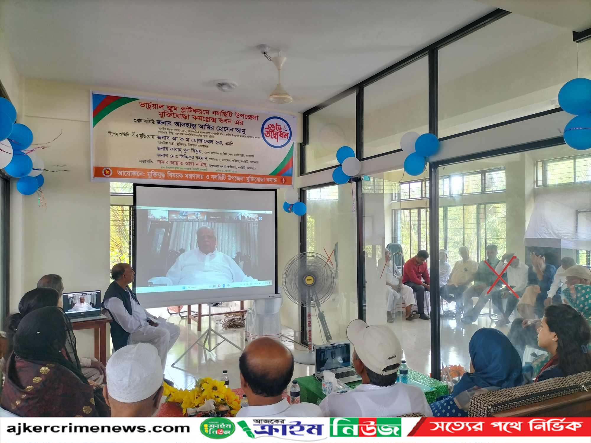 ঝালকাঠি প্রতিনিধি :ঝালকাঠি জেলার নলছিটিতে ভার্চুয়ালী (জুম প্লাটফর্মে) নলছিটি উপজেলা মুক্তিযোদ্ধা কমপ্লেক্স ভবন'র উদ্বোধন করেছেন মুক্তিযুদ্ধ বিষয়ক মন্ত্রী আ.ক.ম মোজাম্মেল হক।