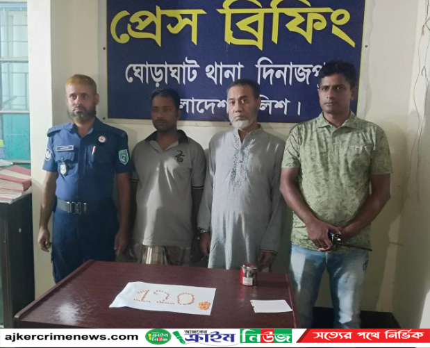গ্রেফতারকৃতরা হলেন, ঘোড়াঘাট উপজেলার পূড়ইল (ডুগডুগীহাট) গ্রামের মৃত মাহাতাব উদ্দিন এর ছেলে রেজাউল করিম রাজু (৫০) ও একই উপজেলার দেওগ্রাম (পশ্চিমপাড়া) গ্রামের কুমর উদ্দিন এর ছেলে আবু সাইদ মাজেদ (২৮)।