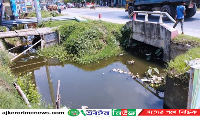 গত তিন মাস আগে আঞ্চলিক মহাসড়কের পাশে সড়ক জনপথ কর্তৃক ড্রেন নির্মাণের কাজ শুরু করে। ড্রেন নির্মাণের কিছু কাজ করার পর মহাসড়কের পাশে সড়ক জনপদের জায়গায় অবৈধ দখলদার ড্রেন নির্মাণ কাজে বাধা প্রদান করেন। ঠিকাদারের সাথে বাক বিতান্ডতায় ঠিকাদার কাজ বন্ধ রেখে চলে যায় বলে এলাকাবাসী জানান।