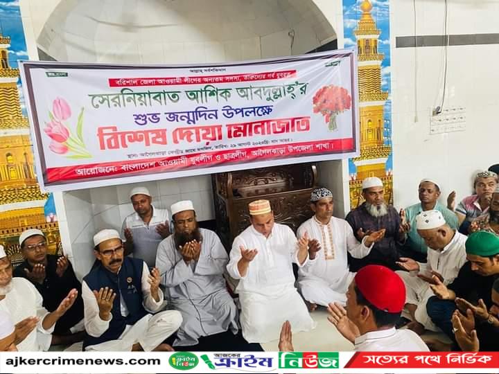 জাতির পিতা বঙ্গবন্ধু শেখ মুজিবুর রহমান ও কৃষক লীগের প্রতিষ্ঠাতা শহীদ আব্দুর রব সেরনিয়াবাত এর ছোট নাতি, বরিশাল জেলা আওয়ামী লীগের কার্যনির্বাহী কমিটির অন্যতম সদস্য, নতুন প্রজন্মের আইকন, যুবরত্ন সেরনিয়াবাত আশিক আবদুল্লাহ’র শুভ জন্মদিন তাঁর জন্মস্থান আগৈলঝাড়ায় দলীয় নেতা কর্মীরা উদযাপন করেছে।প্রজন্মের প্রাণ পুরুষ আশিক আবদুল্লাহ মন্ত্রী মর্যাদায় পার্বত্য চট্টগ্রাম শান্তি চুক্তি বাস্তবায়ন ও পরীবিক্ষণ কমিটির আহ্বায়ক আলহাজ্ব আবুল হাসানাতও আবদুল্লাহ এমপি’র কনিষ্ঠ পুত্র এবং ১৫ আগষ্ট শহীদ সুকান্ত আবদুল্লাহ,বরিশাল সিটির নগর পিতা সেরনিয়াবাত সাদিক আবদুল্লাহ ও এফবিসিসিআই এর অন্যতম পরিচালক, কেন্দ্রীয় কৃষক লীগের নেতা সেরনিয়াবাত মঈন আবদুল্লাহ’র ছোট ভাই। উপজেলা কেন্দ্রীয় জামে মসজিদে উপজেলা যুবলীগ ও ছাত্রলীগের আয়োজনে সেরনিয়াবাত আশিক আবদুল্লাহ’র জন্ম দিন উপলক্ষে ২৯ আগষ্ট মঙ্গলবার বাদ আছর প্রিয় এই নেতার সু-স্বাস্থ্য ও দীর্ঘয়ুু কামনায় বিশেষ দোয়া-মোনাজাত অনুষ্ঠিত হয়েছে। প্রজন্মের আইকন প্রাণ পুরুষ, তারুণ্যের অহংকার প্রিয় নেতা আশিক আবদুল্লাহ’র জন্মদিনে দলীয় নেতা-কর্মী ও শুভাকাঙ্খিরা সামাজিক যোগাযোগ মাধ্যমেও তাকে হৃদয় নিংরানো ভালবাসায় শুভেচ্ছা ও অভিনন্দন জানিয়েছেন। আশিক আবদুল্লাহর জন্মদিনে তাঁর এবং তার পিতা আলহাজ্ব আবুল হাসানাত আবদুল্লাহ এমপি’র সু-স্বাস্থ্য কামনা করে দোয়া-মোনাজাত পরিচালনা করেন উপজেলা কেন্দ্রীয় জামে মসজিদের পেশ ইমাম হাফেজ মাওলানা মোঃ ফজলুল হক। দোয়া-মোনাজাত পূর্ব সংক্ষিপ্ত বক্তব্য রাখেন উপজেলা আওয়ামী লীগ সাধারণ সম্পাদক আবু সালেহ মোঃ লিটন সেরনিয়াবাত। সেরনিয়াবাত আশিক আবদুল্লাহ’র জন্মদিনের দোয়া-মোনাজাতে উপস্থিত ছিলেন- জেলা আওয়ামী লীগ নেতা ও উপজেলা চেয়ারম্যান বীর মুক্তিযোদ্ধা আব্দুর রইচ সেরনিয়াবাত, স্বেচ্ছাসেবক লীগের সভাপতি ফিরোজ সিকদার, উপজেলা যুবলীগ সাবেক সভাপতি মোঃ সাইদুল সরদার,উপজেলা যুবলীগের সভাপতি কামরুজ্জামান সেরনিয়াবাত আজাদ, সাধারণ সম্পাদক সহিদ তালুকদার, যুগ্ম সাধারণ সম্পাদক সেরনিয়াবাত ফয়জুল, আগৈলঝাড়া উপজেলা প্রেসক্লাবের সাধারণ সম্পাদক বি এম মনির হোসেন, উপজেলা ছাত্রলীগের সভাপতি মিন্টু সেরনিয়াবাত, সাধারণ সম্পাদক জাকির হোসেন পাইক, বাকাল ইউনিয়ন আওয়ামী লীগ সাধারণ সম্পাদক মোঃ শহিদুল ইসলাম পাইক, রাজিহার ইউনিয়ন স্বেচ্ছাসেবক লীগ সভাপতি মোঃ ফখরুল ইসলাম মামুন, রাজিহার ইউনিয়ন যুবলীগ যুগ্ম সাধারণ সম্পাদক মোহাম্মদ জুনায়েদ মোল্লা, রাজিহার ইউনিয়ন ছাত্রলীগের সাধারণ সম্পাদক (পথপ্রত্যাশী) মোঃ জাকির হাওলাদারসহ উপজেলা আওয়ামী লীগ নেতৃবৃন্দ, জনপ্রতিনিধিসহ ইউনিয়ন 