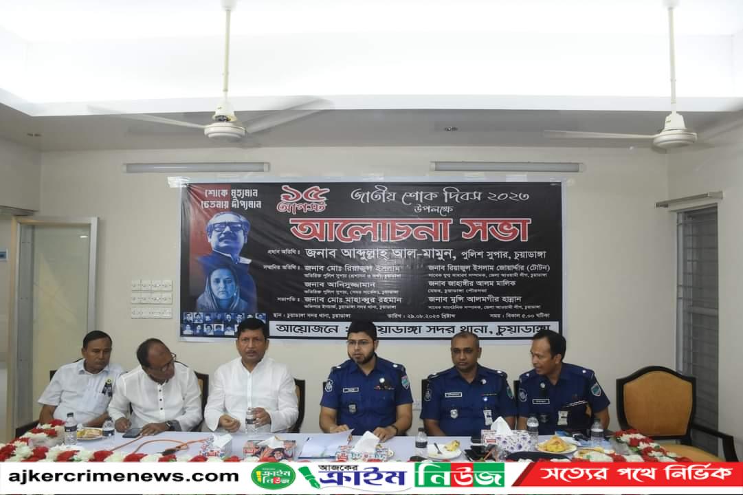 মাহমুদ হাসান রনি ঃচুয়াডাঙ্গা প্রতিনিধিঃ চুয়াডাঙ্গা সদর থানার উদ্যোগে স্বাধীনতার মহান স্থপতি জাতির পিতা বঙ্গবন্ধু শেখ মুজিবুর রহমান-এঁর ৪৮তম শাহাদত বার্ষিকী ও জাতীয় শোক দিবস ২৩ উপলক্ষে আলোচনা সভা অনুষ্ঠিত হয়েছে।