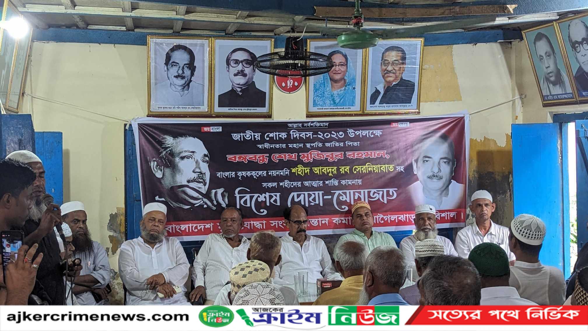 বরিশালের আগৈলঝাড়ায় ৩১ আগষ্ট বৃহস্পতিবার বীর মুক্তিযোদ্ধাদের সন্তানদের পক্ষ থেকে জাতীয় শোক দিবসে মিলাদ ও দোয়ার আয়োজন করা হয়। এ সময় উপস্থিত ছিলেন জেলা আওয়ামী লীগ নেতা ও উপজেলা চেয়ারম্যান বীর মুক্তিযোদ্ধা আব্দুর রইচ সেরনিয়াবাত, উপজেলা আওয়ামী লীগ সাধারণ সম্পাদক আবু সালেহ মোঃ লিটন সেরনিয়াবাত, বীর মুক্তিযোদ্ধা আবু তাহের মিয়া, বীর মুক্তিযোদ্ধা লিয়াকত আলী, বীর মুক্তিযোদ্ধা সিরাজুল হক, উপজেলা আওয়ামী লীগ যুগ্ম সাধারণ সম্পাদক মোঃ সাইদুল সরদার, যুবলীগ সভাপতি কামরুজ্জামান সেরনিয়াবাত আজাদ, ছাত্রলীগ সভাপতি মোঃ মিন্টু সেরনিয়াবাত,সন্তান কমান্ডের আহ্বায়ক আব্দুলা লিটন, আগৈলঝাড়া উপজেলা প্রেসক্লাবের প্রকাশনা সম্পাদক সাজ্জাদ হাওলাদার,সন্তান কমান্ডের যুগ্ন আহ্বায়ক ও রাজিহার ইউনিয়ন আওয়ামী লীগ সাধারণ সম্পাদক মোঃ মুরাদ হোসেন সিকদার ও