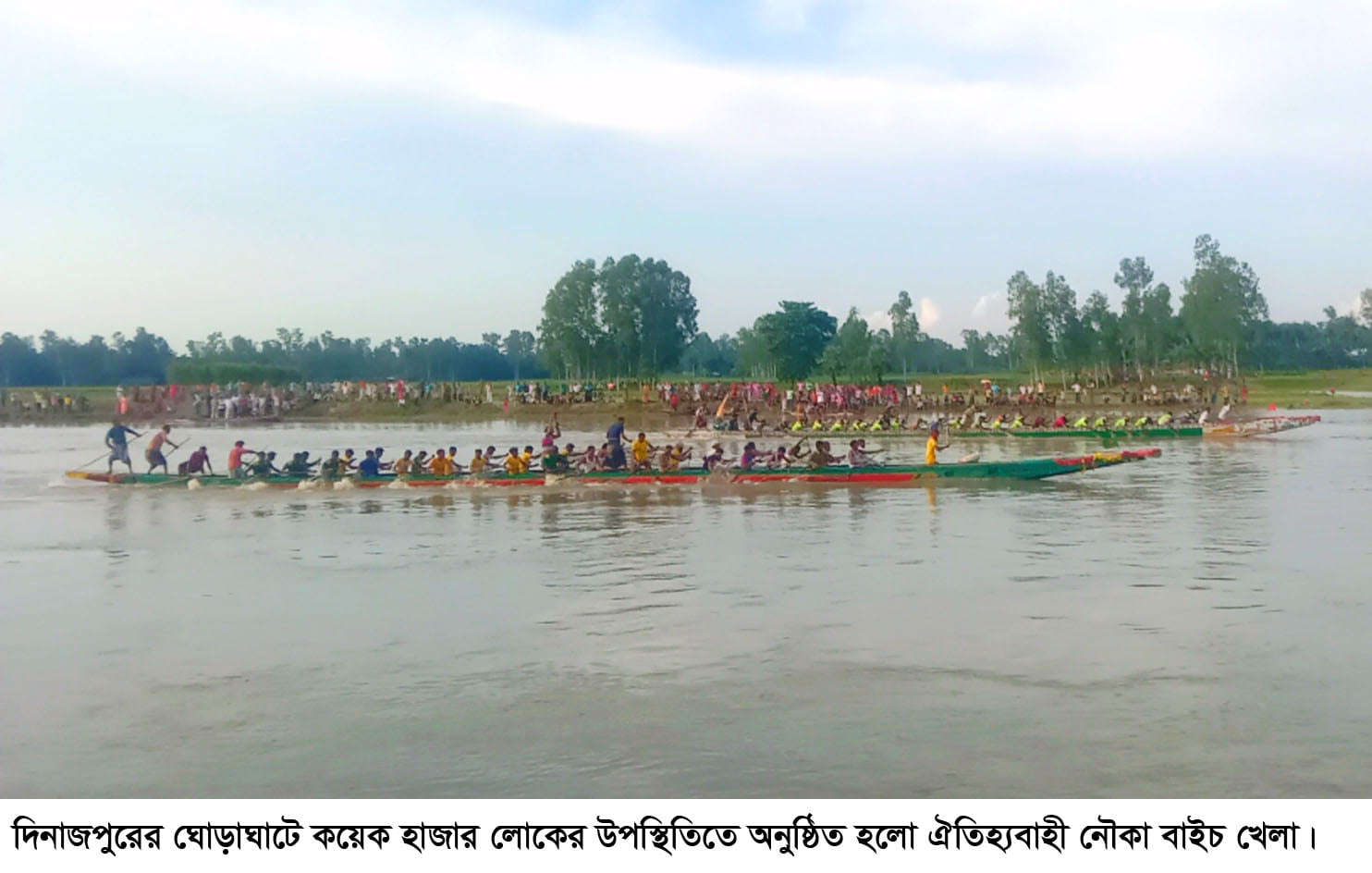 দিনাজপুরের ঘোড়াঘাটে গ্রাম বাংলার ঐতিহ্যবাহী নৌকা বাইচ প্রতিযোগিতা অনুষ্ঠিত হয়েছে।