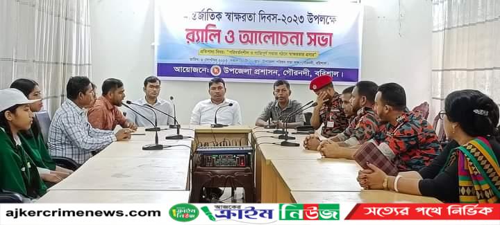 “পরিবর্তনশীল ও শান্তিপূর্ন সমাজ গঠনে স্বাক্ষরতার প্রসার” এই প্রতিপাদ্য কে ধারন করে আন্তর্জাতিক স্বাক্ষরতা দিবস ২০২৩ উপলক্ষে ৮ সেপ্টেম্বর শুক্রবার সকালে বরিশালের গৌরনদী উপজেলা প্রশাসনের আয়োজনে র্যালি ও আলোচনা সভা উপজেলা নির্বাহী অফিসার মোঃ আবু আবদুল্লাহ খান এর সভাপতিত্বে অনুষ্ঠিত হয়েছে। উপস্থিত ছিলেন উপজেলা সহকারী কমিশনার (ভূমি) মোঃ রফিকুল ইসলাম, উপজেলা সহকারী মাধ্যমিক শিক্ষা অফিসার লিটু চক্রবর্তী, প্রাথমিক সহকারী শিক্ষা অফিসার চুন্নু ফকির, উপজেলা জাতীয় মহিলা সংস্থার কর্মকর্তা মোঃ শহিদুল ইসলাম, গৌরনদী ফায়ার সার্ভিস এর সদস্য সহ অন্যান্যরা।