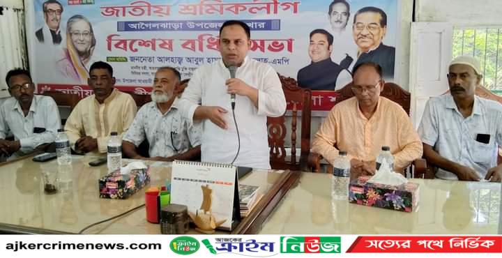 ১০ সেপ্টেম্বর রবিবার সকালে উপজেলা আওয়ামী লীগ ও সহযোগী সংগঠনের কার্যালয়ে উপজেলা শ্রমিক লীগের সভাপতি এ্যাডভোকেট আবুল কাশেম সরদারের সভাপতিত্বে অনুষ্ঠিত বিশেষ বর্ধিত সভায় সাংগঠনিক দিক নির্দেশনা মুলক বক্তব্য রাখেন উপজেলা আওয়ামী লীগের সাধারণ সম্পাদক আবু সালেহ মোঃ লিটন সেরনিয়াবাত। উপজেলা শ্রমিক লীগের সাধারণ সম্পাদক ছরোয়ার দাড়িয়ার সঞ্চালনায় অন্যান্যদের মধ্যে অতিথি হিসেবে বক্তব্য রাখেন উপজেলা আওয়ামী লীগের সভাপতি সুনীল কুমার বাড়ৈ, আওয়ামী লীগ নেতা হালিমুজ্জামান হালিম, বজলুর রহমান হাওলাদারসহ উপজেলা ও বিভিন্ন ইউনিয়নের শ্রমিক লীগের নেতৃবৃন্দরা। বিশেষ বর্ধিত সভায় সর্বস্মতিক্রমে উপজেলা সদর ও পাঁচটি ইউনিয়নের সম্মেলনের মাধ্যমে জাতীয় শ্রমিক লীগের কমিটি গঠনের সিদ্ধান্ত গ্রহন করা হয়। সভার সূত্র মতে, ১২ সেপ্টেম্বর মঙ্গলবার রাজিহার ইউনিয়নের বাশাইল মাধ্যমিক বিদ্যালয় মাঠে বিকেল তিনটায় সম্মেলন অনুষ্ঠিত হবে। ১৩ সেপ্টেম্বর বুধবার বাকাল ইউনিয়নে, ১৪ সেপ্টেম্বর বৃহস্পতিবার বাগধা ইউনিয়নের নাঘিরপাড় মাধ্যমিক বিদ্যালয় মাঠ প্রাঙ্গনে, ১৫ সেপ্টেম্বর শুক্রবার গৈলা ইউনিয়নের গৈলা সরকারী মডেল মাধ্যমিক বিদ্যালয় মাঠে এবং ১৬ সেপ্টেম্বর শনিবার রত্নপুর ইউনিয়নের মোল্লাপাড়া মাধ্যমিক বিদ্যালয় মাঠে বিকেল তিনটায় শ্রমিক লীগের সম্মেলন অনুষ্ঠিত হবে। পাঁচটি ইউনিয়নের সম্মেলন শেষে উপজেলা জাতীয় শ্রমিক লীগের সম্মেলন অনুষ্ঠিত হবে।এ লক্ষে উপজেলা ও ইউনিয়ন শ্রমিক লীগের নেতা-কর্মীদের সকল প্রস্তুতি সম্পন্ন করতে নির্দেশনা প্রদান করেছেন উপজেলা আওয়ামী লীগের সধারণ সম্পাদক আবু সালেহ মোঃ লিটন সেরনিয়াবাত। বিশেষ বর্ধিত সভায় আওয়ামী লীগ ও সহযোগী সংগঠনের নেতৃবৃন্দরা উপস্থিত ছিলেন।