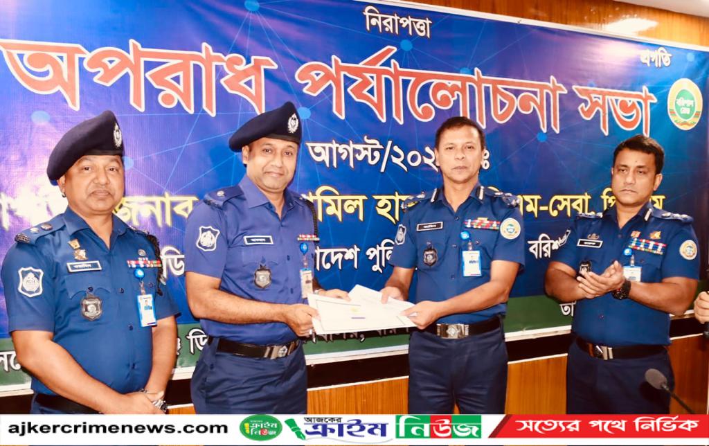 বরিশাল জেলার গৌরনদী মডেল থানাকে আবারও শ্রেষ্ঠ থানা হিসেবে নির্বাচিত করা হয়েছে। মোস্ট ওয়ানন্টেড পলাতক আসামি গ্রেপ্তারসহ আইনশৃংখলা পরিস্থিতির সার্বিক দিক মূল্যায়নের ভিত্তিতে বরিশাল জেলার মধ্যে আবারও গৌরনদী মডেল থানাকে শ্রেষ্ঠ থানা হিসেবে নির্বাচিত করা হয়েছে। এ উপলক্ষে ১১ সেপ্টেম্বর সোমবার সকালে বরিশাল রেঞ্জ ডিআইজির কার্যালয়ে গৌরনদী মডেল থানার অফিসার ইনচার্জ মোঃ আফজাল হোসেনের হাতে শ্রেষ্ঠ থানার সম্মাননা স্মারক ও সনদপত্র তুলে দিয়েছেন রেঞ্জ ডিআইজি মোঃ জামিল হাসান বিপিএম সেবা, পিপিএম। এসময় উপস্থিত ছিলেন বরিশাল জেলা পুলিশ সুপার মোঃ ওয়াহিদুল ইসলামসহ অন্যান্য কর্মকর্তারা।