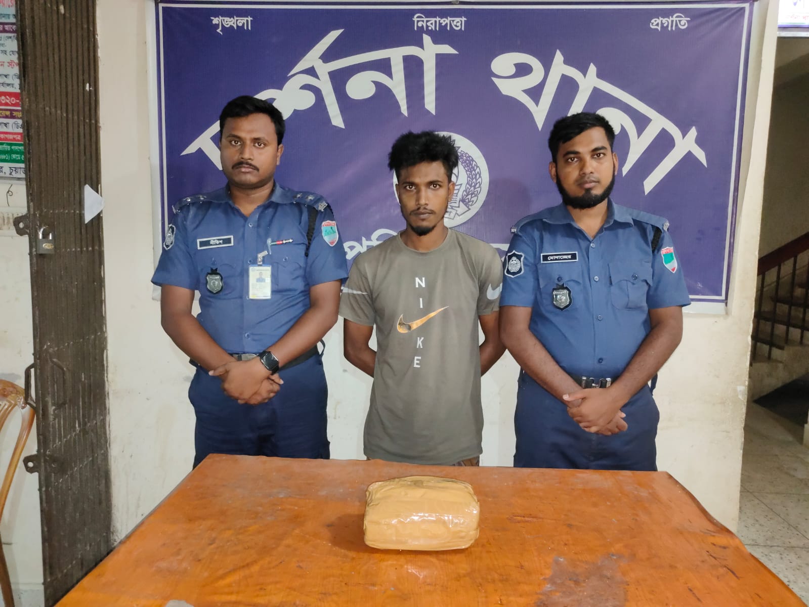শুক্রবার রাত সাড়ে ৯টায় দর্শনা থানার অফিসার ইনচার্জ বিপ্লব কুমার সাহার নেতৃত্বে এসআই(নিঃ) মোঃ ফজলুর রহমান সঙ্গীয় অফিসার ও ফোর্সসহ গোপন সংবাদের ভিত্তিতে সড়াবাড়ীয়া গ্রামে মাদকবিরোধী অভিযান চালায়। এসময় গ্রামের মোড়ে বড়বলদিয়া গ্রামের আনারুল মালিথার ছেলে সালাউদ্দিন মালিতা(২৪) কে গ্রেফতার করে। পরে দেহ তল্লাশী করে তার হেফাজত হতে অবৈধ ১ কেজি গাঁজা উদ্ধার করে। গ্রেফতারকৃত আসামীর বিরুদ্ধে দর্শনা থানায় নিয়মিত মামলা রুজু করা হয়েছে।