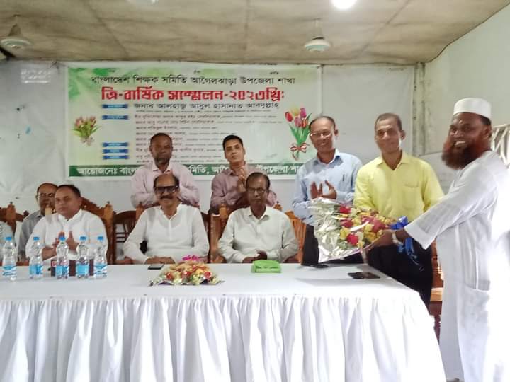 বরিশালের আগৈলঝাড়ায় বাংলাদেশ শিক্ষক সমিতি, আগৈলঝাড়া শাখার ত্রি-বার্ষিক সন্মেলন-২০২৩ অনুষ্ঠিত হয়। আগৈলঝাড়া শ্রীমতী মাতৃমঙ্গল বালিকা মাধ্যমিক বিদ্যালয়ের হলরুমে ১৬ সেপ্টেম্বর শনিবার সকাল ১০টায় শিক্ষক সমিতি সভাপতি সুনীল কুমার বাড়ৈর সভাপতিত্বে প্রধান অতিতি হিসাবে উপস্থিত ছিলেন আগৈলঝাড়া উপজেলা চেয়ারম্যান বীর মুক্তিযোদ্ধা আবদুর রইচ সেরনিয়াবাত, বিশেষ অতিথি হিসেবে উপস্থিত ছিলেন আগৈলঝাড়া উপজেলা আওয়ামী লীগের সাধারণ সম্পাদক আবু সালেহ মোঃ লিটন সেরনিয়াবাত, মোঃ শফিকুল হোসেন টিটু সভাপতি বাশিস বরিশাল শাখা, মোঃ আসাদুল আলম সাধারন সম্পাদক বাশিস বরিশাল শাখা, এইচ এম ইলিয়াস হোসেন সাংগঠনিক সম্পাদক বরিশাল অঞ্চল বরিশাল, প্রধান বক্তা মোঃ আবুল কালাম সাম্পাদক বরিশাল অঞ্চল বরিশাল, বীর মুক্তিযোদ্ধা দাশগুপ্ত আশীষ কুমার সহ অনেকে। পরের অধিবেশনে আগামী ৩ বছরের জন্য নতুন কমিটি অনুমোদন করা হয়। নব নির্বাচিত কমিটির সভাপতি সুনিল কুমার বাড়ৈ, সাধারন সম্পাদক মোঃ মিজানুর রহমান বাবু,যুগ্ম সাধারন সম্পাদক শৈলেশ তফাদার, সাংগঠনিক সম্পাদক উজ্জ্বল কুমার মন্ডল, অর্থ সম্পাদক পুলিন চন্দ্র বাড়ৈসহ ৫৫ সদস্যের কমিটির নাম অনুমোদন করা হয়েছে।