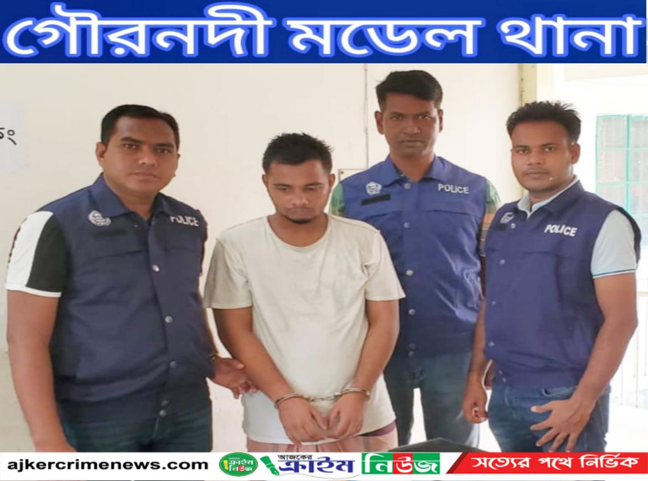 বরিশাল জেলার গৌরনদী উপজেলার পূর্ব লাখেরাজ কসবার সালেক হাওলাদারের পুত্র রায়হান হাওলাদার(৩৩) কে ১০৫ পিছ, ইয়াবা সহ গ্রেফতার করেছে গৌরনদী মডেল থানা পুলিশ। গৌরনদী মডেল থানার অফিসার ইনচার্জ মোঃ আফজাল হোসেন সাংবাদিক দের জানান ১৬ সেপ্টেম্বর শনিবার রাতে এস আই মুজিবুর রহমান, এএস আই আসাদুল ইসলাম,এ এস আই আমিনুল ইসলাম,এ এস আই হুমায়ুন, এ এস আই ইমরান অভিযান চালিয়ে উপজেলার পূর্ব লাখেরাজ কসবার সালেক হাওলাদারের পুত্র রায়হান হাওলাদার(৩৩)কে টরকি চর ইসহাক ঘরামীর বাড়ির সামনে পাকা রাস্তার উপর থেকে ১০৫ পিছ ইয়াবা সহ গ্রেফতার করে থানায় নিয়ে আসে ১৭ সেপ্টেম্বর রোববার এস আই মুজিবুর রহমান বাদী হয়ে মাদকদ্রাব্য নিয়ন্ত্রণ আইনে মামলা দায়ের করে বরিশাল আদালতে প্রেরণ করেন। এএস আই আসাদুল ইসলাম সাংবাদিক বি এম মনির হোসেনকে জানান গোপন সংবাদের ভিত্তিতে জানতে পারি রায়হান হাওলাদার নামে এক মাদক ব্যবসায়ী মাদক নিয়ে টরকি চর এলাকায় অবস্থানকরছে আমারা গৌরনদী মডেল থানার অফিসার ইনচার্জ মোঃ আফজাল হোসেন স্যারের দিক নিদর্শনায় টরকি চর এলাকায় গিয়ে একজন লোক দেখতে পাই তাকে তার নাম জিজ্ঞাসা করি জিজ্ঞাসার সাথে সাথে দৌড়ে পালিয়ে যাওয়ার জন্য চেষ্টা করে আমরাও সবাই দৌড়ে তাকে ধরে ফেলি তখন তার নাম ঠিকানা জানতেপারি রায়হান হাওলাদার (৩৩) পিতা-সালেক হাওলাদার সাং পূর্ব লাখেরাজ কসবা থানা-গৌরনদী তার লুংগি র কোছর থেকে একটা পলিথিনে পেচানো ১০৫ পিছ ইয়াবা পাই এবং জিজ্ঞাসা বাদে জানায় সে এক জন মাদক ব্যবসায়ি।