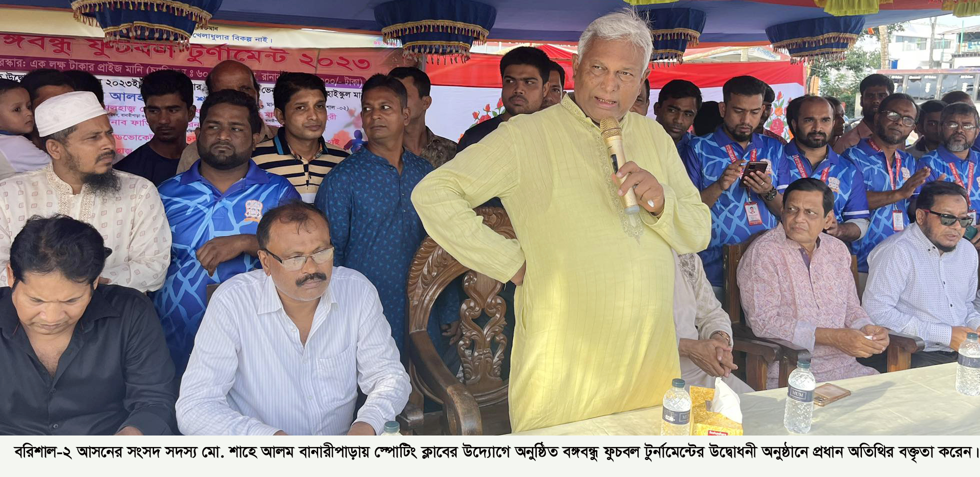রাহাদ সুমন,বিশেষ প্রতিনিধি॥ বরিশালের বানারীপাড়ায় স্পোটিং ক্লাব আয়োজিত বঙ্গবন্ধু ফুটবল টুর্নামেন্টের উদ্বোধনী খেলা অনুষ্ঠিত হয়েছে। ২২ সেপ্টেম্বর শুক্রবার বিকালে বানারীপাড়া হাই স্কুল মাঠে প্রধান অতিথি হিসেবে বরিশাল-২ আসনের সংসদ সদস্য মো. শাহে আলম এ ফুটবল টুর্নামেন্টের উদ্বোধন করেন। বানারীপাড়া স্পোটিং ক্লাবের প্রতিষ্ঠাতা সভাপতি মো. রুহুল আমিন শুভ’র সভাপতিত্বে উদ্বোধনী অনুষ্ঠানে বিশেষ অতিথি ছিলেন বানারীপাড়া উপজেলা আওয়ামী লীগের সহ-সভাপতি এটিএম মোস্তফা সরদার,যুগ্ম সম্পাদক সুব্রত লাল কুন্ডু,সাংগঠনিক সম্পাদক জাকির হোসেন সরদার,সাংগঠনিক সম্পাদক ও উপজেলা ভাইস চেয়ারম্যান নুরুল হুদা,বানারীপাড়া থানার সাবেক ওসি ও বর্তমানে বরিশাল কোর্ট ইন্সপেক্টর জিয়াউল আহসান, বানারীপাড়া থানার ইন্সপেক্টর (তদন্ত) মো. মমিন উদ্দিন,উপজেলার ইলুহার ইউপির সাবেক চেয়ারম্যান আব্দুর রহিম ও বানারীপাড়া প্রেসক্লাব সভাপতি রাহাদ সুমন। হারুনুর রশিদ,বিপ্লব সরদার ও সুবল দাসের সঞ্চালনায় এছাড়াও অনুষ্ঠানে অন্যান্যের মধ্যে উপস্থিত ছিলেন উপজেলা স্বেচ্ছাসেবক লীগের প্রতিষ্ঠাতা সভাপতি আনিছুর রহমান মিলন,এমপি শাহে আলমের এপিএম জসিম উদ্দিন,উপজেলা কৃষকলীগের যুগ্ম আহবায়ক কামরুল হাসান সেলিম, উপজেলা শেখ রাসেল জাতীয় শিশু কিশোর পরিষদের সভাপতি আবুল বাশার বাদশা,সাধারণ সম্পাদক এনায়েত হোসেন মোল্লা, বানারীপাড়া স্পোটিং ক্লাবের সাধারণ সম্পাদক জাহিদ হোসেন, উপজেলা ছাত্রলীগের সাবেক যুগ্ম আহবায়ক সুমম রায় সুমন,প্রেসক্লাবের সহ-সভাপতি কাওসার হোসেন, সাবেক ছাত্রলীগ নেতা সাইফুল ইসলাম, উপজেলা ছাত্রলীগের সাংগঠনিক সম্পাদক সুমন দেবনাথ,পৌর ছাত্রলীগের সাধারণ সম্পাদক সজল চৌধুরী প্রমুখ।