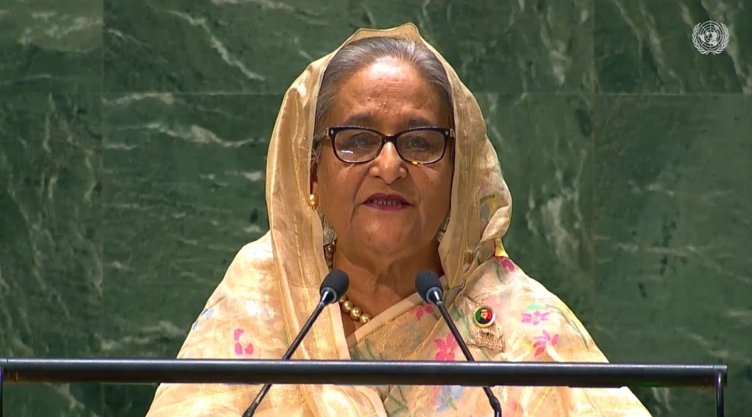 রোহিঙ্গা সংকটের ওপর আলোকপাত করে শেখ হাসিনা বলেন, আমি মিয়ানমার থেকে জোরপূর্বক বাস্তুচূত রোহিঙ্গা জনগোষ্ঠীর প্রতি আপনার দৃষ্টি আকর্ষণ করছি। গত মাসে রোহিঙ্গাদের বাস্তুচূত হওয়ার ছয় বছর পূর্ণ হয়েছে। সম্পূর্ণ মানবিক কারণে আমরা অস্থায়ীভাবে তাদের আশ্রয় দিয়েছি। কিন্তু পরিস্থিতি এখন আমাদের জন্য সত্যিই অসহনীয় হয়ে উঠেছে। বাংলাদেশে রোহিঙ্গাদের দীর্ঘায়িত উপস্থিতি বাংলাদেশের অর্থনীতি, পরিবেশ, নিরাপত্তা এবং সামাজিক-রাজনৈতিক স্থিতিশীলতার ওপর মারাত্মক প্রভাব ফেলেছে। প্রত্যাবাসন নিয়ে অনিশ্চয়তা রোহিঙ্গা জনগোষ্ঠীর মধ্যে ব্যাপক হতাশার জন্ম দিয়েছে। এই পরিস্থিতি সম্ভাব্য মৌলবাদকে ইন্ধন দিতে পারে। এই অবস্থা চলমান থাকলে এটি আমাদের আঞ্চলিক এবং আন্তর্জাতিক নিরাপত্তা ও স্থিতিশীলতাকে প্রভাবিত করতে পারে। বাস্তুচূত রোহিঙ্গারা তাদের নিজ দেশ মিয়ানমারে ফিরে যেতে চায় এবং সেখানে তারা শান্তিপূর্ণ জীবনযাপন করতে আগ্রহী। আসুন আমরা এই নিঃস্ব মানুষের জন্য তাদের নিজের দেশে ফিরে যাওয়া নিশ্চিত করি।
