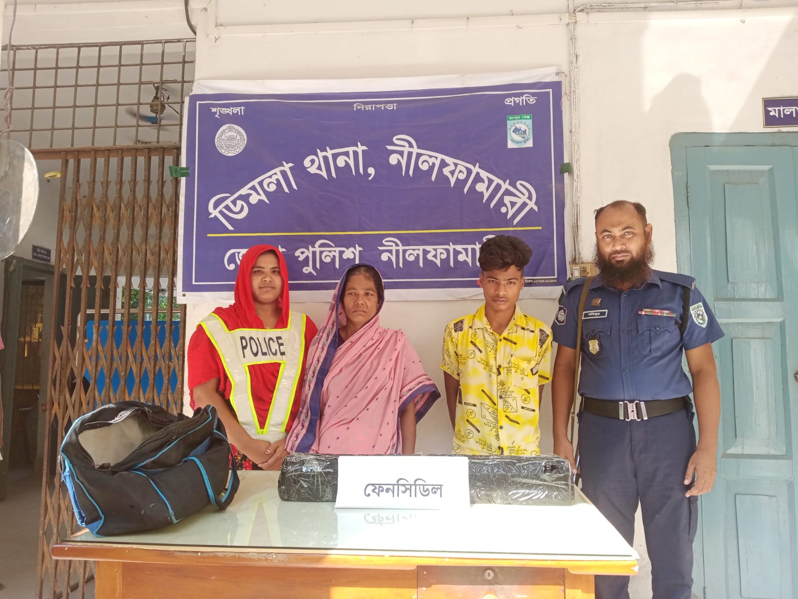 গোপন সংবাদের ভিত্তিতে ফেন্সিডিলসহ মা ও ছেলেকে আটক করা হয়।আটককৃতদের নামে মামলা দায়েরের পর বিজ্ঞ আদালতে সোপর্দ করা হয়েছে।নীলফামারী পুলিশ সুপার মো. গোলাম সবুর(পিপিএম-সেবা)এর দিক নির্দেশনায় এ অভিযান অব্যাহত থাকবে।