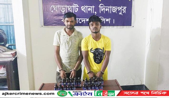 পুলিশ জানায়, উপ পরিদর্শক (এসআই) অসীম কুমার মোদকের নেতৃত্বে থানা পুলিশের একটি দল ডুগডুগিহাট বাজার এলাকায় অবস্থান নেয়। এ সময় সীমান্তবর্তী হিলি থেকে সড়ক দিয়ে ঘোড়াঘাটের উদ্দেশ্যে আসা একটি সন্দেহভাজন মোটরসাইকেলকে থামার সংকেত দেয় পুলিশ সদস্যরা। মোটরসাইকেলে থাকা দুজন পুলিশের উপস্থিতি বুঝতে পেরে মোটরসাইকেলের গতি কিছুটা কমিয়ে দৌঁড় দেয়। পুলিশ পিছু নিয়ে তাদেরকে আটক করে। পরে মোটরসাইকেলের সিটের নিচে সাজিয়ে রাখা ২০ বোতল ফেন্সিডিল জব্দ করে পুলিশ।