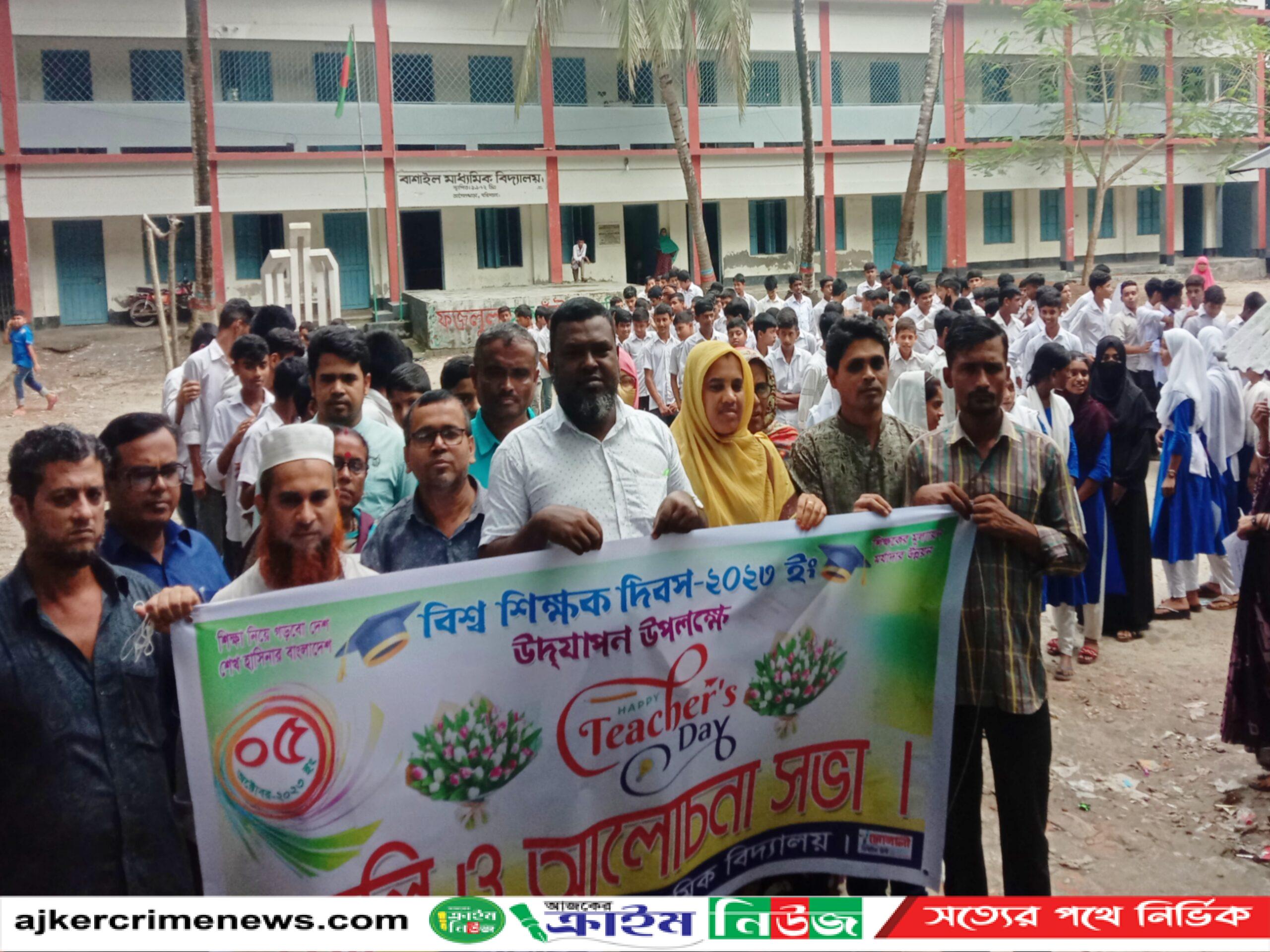 শিক্ষা নিয়ে গড়বো দেশ-শেখ হাসিনার বাংলাদেশ,শিক্ষার আলো ঘরে ঘরে জ্বালো এই স্লোগান দিয়ে শুরু হয় র্যালী, বরিশালের আগৈলঝাড়া উপজেলার ৩৮টি মাধ্যমিক বিদ্যালয়ে বিশ্ব শিক্ষক দিবস উপলক্ষে র্যালী ও আলোচনা সভা অনুষ্ঠিত হয়েছে। ৫ অক্টোবর বৃহস্পতিবার সকালে উপজেলার সরকারী গৈলা মডেল মাধ্যমিক বিদ্যালয়, সেরাল মাধ্যমিক বিদ্যালয়, বাশাইল মাধ্যমিক বিদ্যালয় সহ সকল বিদ্যালয়ের শিক্ষক, শিক্ষার্থী, ম্যানেজিং কমিটি’র সদস্যের দের নিয়ে র্যালী বের হয়ে বিভিন্ন সড়ক প্রদক্ষিন শেষে বিদ্যালয় চত্তরে গিয়ে শেষ হয়। পরে সরকারী গৈলা মডেল মাধ্যমিক বিদ্যালয়ের প্রধান শিক্ষক জহিরুল হকের সভাপতিত্বে বিশ্ব শিক্ষক দিবসের আলোচনা সভায় উপস্থিত ছিলেন উপজেলা শিক্ষক সমিতির সভাপতি সুলীল কুমার বাড়ৈ,বিদ্যালয়ের ম্যানেজিং কমিটি’র সদস্যে, শিক্ষক, শিক্ষার্থী,প্রমুখ। অপর দিকে সেরাল বহুমুখী মাধ্যমিক বিদ্যালয়ের প্রধান শিক্ষকের সভাপতিত্বে বিশ্ব শিক্ষক দিবসের আলোচনা সভায় উপস্থিত ছিলেন ম্যানেজিং কমিটি’র সভাপতি ও উপজেলা আওয়ামী লীগের সাধারণ সম্পাদক আবু সালেহ মোঃ লিটন সেরনিয়াবাত,বিদ্যালয়ের ম্যানেজিং কমিটি’র সদস্যে, শিক্ষক, শিক্ষার্থী,প্রমুখ। এছাড়াও বাশাইল মাধ্যমিক বিদ্যালয়ের প্রধান শিক্ষক মোঃ নুরুল হক মিয়ার সভাপতিত্বে বিশ্ব শিক্ষক দিবস উদযাপন উপলক্ষে র্যালী ও আলোচনা সভায় উপস্থিত ছিলেন উপজেলা ভাইস চেয়ারম্যান মোঃ রফিকুল ইসলাম তালুকদার, উপজেলা আওয়ামী লীগের সহ-সভাপতি ও রাজিহার ইউনিয়ন পরিষদের চেয়ারম্যান মোঃ ইলিয়াস তালুকদার, দৈনিক বাংলাদেশের আলো ও দৈনিক হিরন্ময় পত্রিকার প্রতিনিধি বি এম মনির হোসেন, আগৈলঝাড়া উপজেলা প্রেসক্লাবের সহ-সভাপতি ও দৈনিক নয়া দিগন্তের প্রতিনিধি শফিকুল ইসলাম, বিদ্যালয়ের ম্যানেজিং কমিটি’র সদস্যে, শিক্ষক, শিক্ষার্থী, ৪নং ওয়াড আওয়ামী লীগ সাধারণ সম্পাদক ও ইউপি মেম্বার মোঃ হাবুল ঘরামীসহ অনেকে।