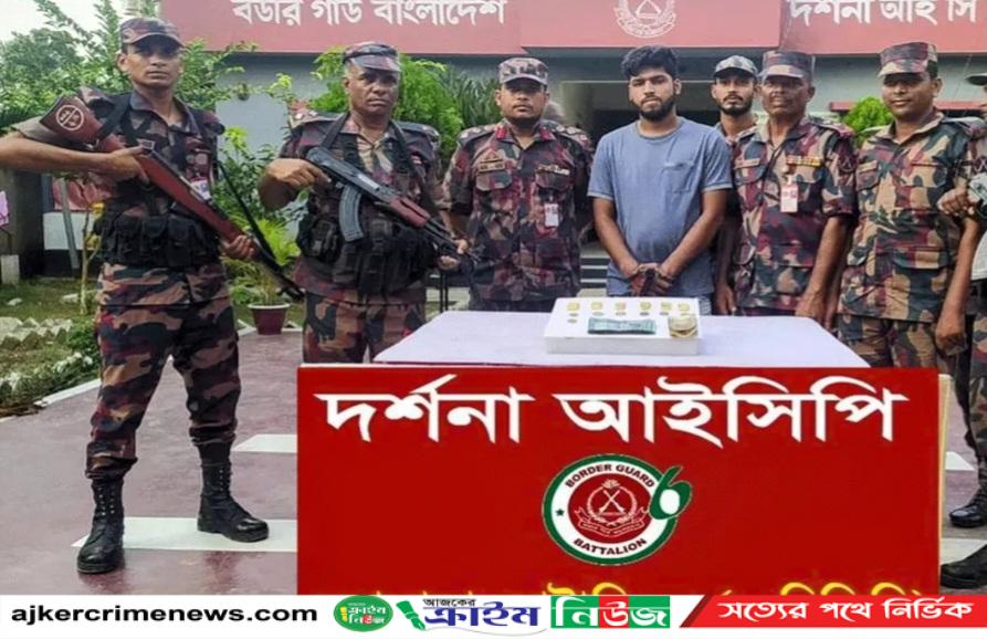 বুধবার সন্ধ্যা ৬ টায় চুয়াডাঙ্গা-৬ বিজিবি ব্যাটালিয়ন অধিনায়ক লে. কর্নেল সাঈদ মোহাম্মদ জাহিদুর রহমান সংবাদ বিজ্ঞপ্তির মাধ্যমে সাংবাদিকদের বলেন, বিকাল সাড়ে ৩ টার দিকে দর্শনা জয়নগর আইসিপি চেকপোস্ট থেকে স্বর্ণেরবারসহ তাকে আটক করা হয়।