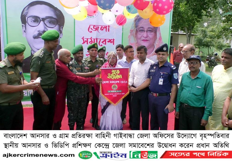 বাংলাদেশ আনসার ও গ্রাম প্রতিরক্ষা বাহিনী গাইবান্ধা জেলা অফিসের উদ্যোগে বৃহস্পতিবার স্থানীয় আনসার ও ভিডিপি প্রশিক্ষণ কেন্দ্রে জেলা সমাবেশ অনুষ্ঠিত হয়। এতে প্রধান অতিথি ছিলেন জাতীয় সংসদের হুইপ মাহাবুব আরা বেগম গিনি এমপি ও মূখ্য আলোচক ছিলেন আনসার ও গ্রাম প্রতিরক্ষা বাহিনীর রংপুর রেঞ্জের পরিচালক মো. আব্দুস সামাদ।