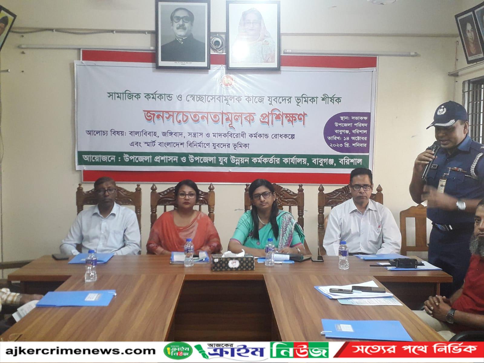 শনিবার সকালে বাবুগঞ্জ উপজেলা পরিষদ সভাকক্ষে উপজেলা প্রশাসন ও উপজেলা যুব উন্নয়ন অফিসার এর কার্যালয়ের আয়োজনে এ জনসচেতনতামূলক প্রশিক্ষণ অনুষ্ঠিত হয়।