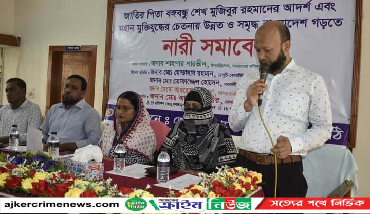 নারী সমাবেশে প্রধান অতিথি হিসেবে বক্তব্য প্রদান করেন সমাজ সেবা অধিদপ্তরের উপপরিচালক শাহপার পারভীন। বিশেষ অতিথি হিসেবে উপস্থিত ছিলেন যুব প্রশিক্ষণ কেন্দ্রের ডেপুটি কো-অর্ডিনেটর মোঃ মোতাহার রহমান, যুব উন্নয়ন অধিদপ্তরের সহকারী পরিচালক মোঃ তোফাজ্জেল হোসেন এবং সিনিয়র ইনস্ট্রক্টর (পশুপালন) সৈয়দা আফরোজা সুলতানা। সভাপতিত্ব করেন জেলা তথ্য অফিসার মোঃ আহসান কবীর। অনুষ্ঠান সঞ্চালনা করেন উচ্চমান সহকারী মোঃ জাকির হোসেন। নারী সমাবেশে মাননীয় প্রধানমন্ত্রীর ১০টি বিশেষ উদ্যোগ- পল্লী সঞ্চয় ব্যাংকের কার্যক্রম, আশ্রায়ণ প্রকল্প, স্মার্ট বাংলাদেশ, শিক্ষা সহায়তা কর্মসূচি, নারীর ক্ষমতায়ন, ঘরে ঘরে বিদ্যুৎ, কমিউনিটি ক্লিনিক ও মানসিক স্বাস্থ্য, সামাজিক নিরাপত্তা কর্মসূচী, বিনিয়োগ বিকাশ এবং পরিবেশ সুরক্ষাসহ নিরাপদ খাদ্য, মাদকের ভয়াবহতা, অপরাজনীতি ও সাম্প্রদায়িকতা, ভিশনঃ ২০৪১, বিভিন্ন ক্ষেত্রে সরকারের অর্জিত সাফল্য ও উন্নয়ন পরিকল্পনা, দেশের বিরুদ্ধে অপপ্রচার প্রতিরোধ, জ্বালানী সাশ্রয়, কোনো জমি অনাবাদী না রাখা, বাল্যবিবাহ ও সন্ত্রাস প্রতিরোধ, গুজব প্রতিরোধ, জঙ্গিবাদ ও নাশকতা প্রতিরোধ, ইভটিজিং প্রতিরোধ, নৈতিকতা ও মূল্যবোধ সম্পর্কে সচেতনতা, সামাজিক যোগাযোগ মাধ্যমের সদ্ব্যবহার, জন্ম নিবন্ধনের প্রয়োজনীয়তা, শিক্ষা, অটিজম, নিরাপদ খাদ্য, তথ্য অধিকার আইন ২০০৯ ও জাতীয় আইনগত সহায়তা প্রদান বিষয়ে উদ্বুদ্ধকরণ বক্তব্য প্রদান করা হয়। সমাবেশে বিভিন্ন শ্রেণী পেশার প্রায় দেড়শতাধিক নারী এবং কিছু সংখ্যক পুরুষ উপস্থিত ছিলেন।