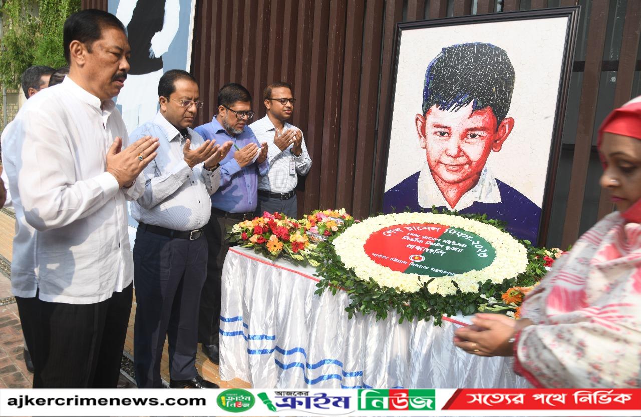 আজ ঢাকার বেইলি রোডে শেখ হাসিনা পার্বত্য চট্টগ্রাম ঐতিহ্য সংরক্ষণ ও গবেষণা কেন্দ্র প্রাঙ্গণে শেখ রাসেল দিবস-২০২৩ উদযাপিত হয়। সকাল সাড়ে ৮ টায় যথাযোগ্য মর্যাদায় শেখ রাসেল স্মৃতি প্রতিকৃতিতে পার্বত্য চট্টগ্রাম বিষয়ক মন্ত্রণালয়ের পক্ষ থেকে পুষ্পস্তবক অর্পণ করেন পার্বত্য চট্টগ্রাম বিষয়ক মন্ত্রী বীর বাহাদুর উশৈসিং এমপি ও পার্বত্য সচিব মোঃ মশিউর রহমান এনডিসি। এসময় মন্ত্রণালয়ের কর্মকর্তা কর্মচারীরা উপস্থিত ছিলেন।