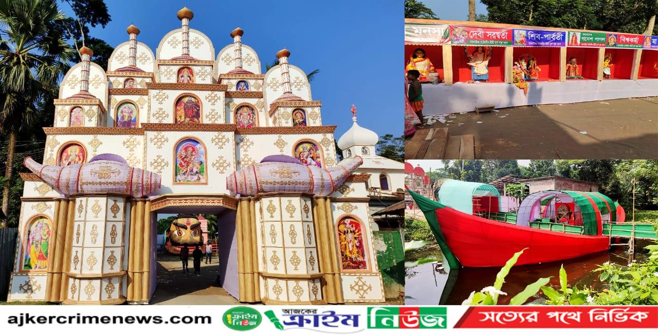 বরিশালের আগৈলঝাড়ায় দূর্গাপুজা উপলক্ষে নির্মিত শঙ্খ ও প্রদীপের আদলে তৈর গেটের থিম দেখতে ভক্ত ও দর্শনার্থীদের ঢল ১৫জনের একটি দল ভারতে প্রশিক্ষণ শেষে নির্মাণ করা স-ুদৃশ্য তোরণ নিয়ে আলোড়ন। ভক্ত আর দর্শনার্থীদের মন জুড়ানো থীম, দৃষ্টি নন্দন সুদৃশ্য তোরণ নির্মাণের মাধ্যমে আগৈলঝাড়া উপজেলার ১৫৮টি পুজা মন্ডপের কেন্দ্র বিন্দুতে পরিনত হয়েছে বারপাইকা সার্বজনীন দুর্গা মন্দির। উপজেলা পর্যায়ে দেশের সবচেয়ে বেশি পুজা অনুষ্ঠিত হয়েছে বরিশালের আগৈলঝাড়া উপজেলায়। উপজেলার পাঁচটি ইউনিয়নের ১৫৮টি মন্ডপে শুক্রবার মহাধুমধামে ষষ্ঠী পুজার মধ্যদিয়ে শারদীয় দূর্গাপুজা শুরু হয়েছে। ২৪ অক্টোবর মঙ্গলবার দশমী তিথিতে প্রতিমা বিসর্জনের মধ্যদিয়ে পুজার আচার শেষ হবে। উপজেলার বারপাইকা সার্বজনীন দূর্গা মন্দিরের সভাপতি সঞ্জয় রায় জানান, অন্যান্য বছরের মতো এ বছরও উপজেলার গন্ডি পেরিয়ে জেলা জুড়ে দর্শনার্থীদের মধ্যে ব্যাপক আলোড়ন সৃষ্টি করেছে আগৈলঝাড়া উপজেলার রত্মপুর ইউনিয়নের অজপাড়া গাঁয়ের বারপাইকা সার্বজনীন দূর্গা মন্দিরের সুদৃশ্য তোরণ।