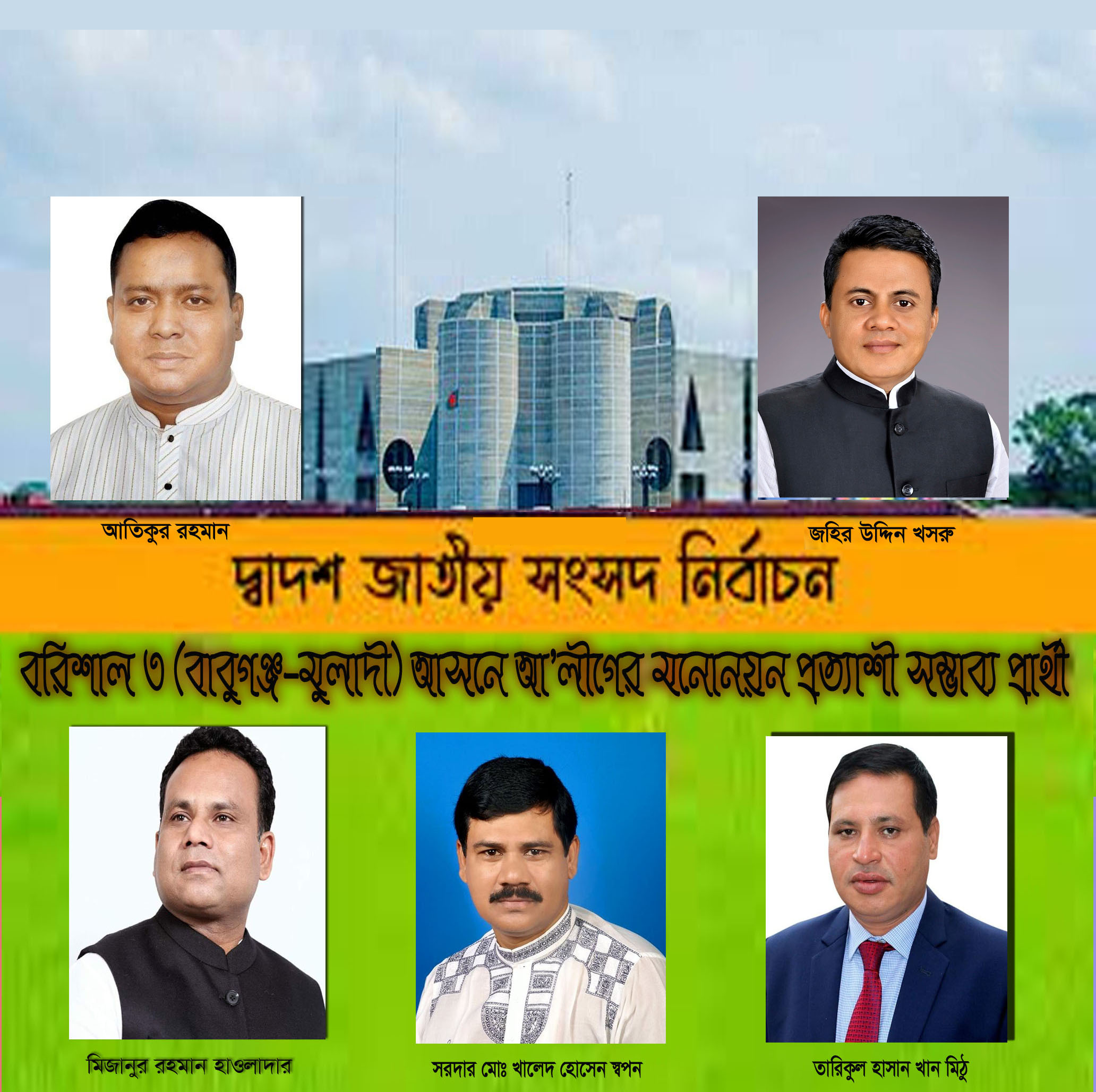 আগামী দ্বাদশ জাতীয় সংসদ নির্বাচনে আওয়ামী লীগের মনোনয়ন প্রত্যাশীদের মধ্যে রয়েছেন বরিশাল বিভাগ উন্নয়ন ফোরামের সাধারণ সম্পাদক ও বাবুগঞ্জ উপজেলা আওয়ামী লীগের কার্যনির্বাহী কমিটির অন্যতম সদস্য মোঃ আতিকুর রহমান, কেন্দ্রীয় যুবলীগের সাংগঠনিক সম্পাদক জহির উদ্দিন খসরু, কেন্দ্রীয় যুবলীগের সাবেক সহ-সম্পাদক মিজানুর রহমান, বাবুগঞ্জ উপজেলা আওয়ামীলীগ সভাপতি এসএম খালেদ হোসেন স্বপন, মুলাদী উপজেলা আওয়ামী লীগের সাধারণ সম্পাদক তারিকুল হাসান খান মিঠু।