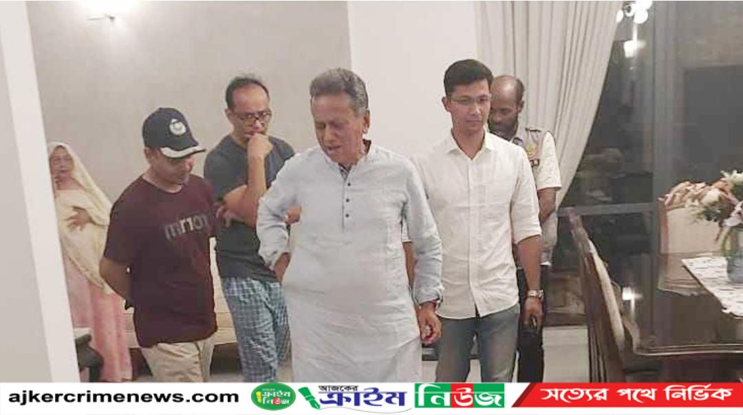 বিএনপির জাতীয় স্থায়ী কমিটির সদস্য আমীর খসরু মাহমুদ চৌধুরীকে তার বাসা থেকে নিয়ে যাচ্ছে ডিবি। ছবি : সংগৃহীত