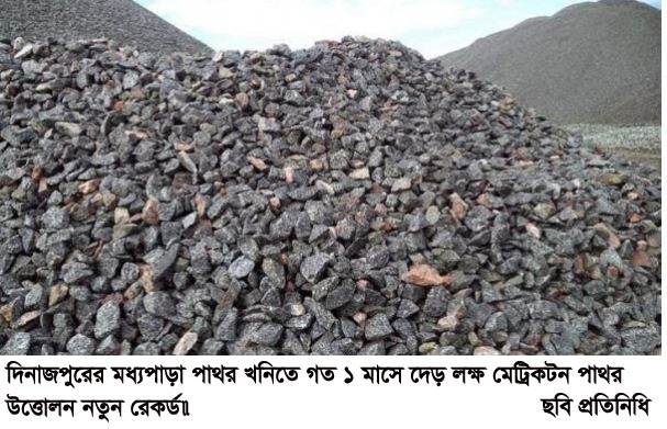 দিনাজপুরের মধ্যপাড়া কঠিন শিলা খনি থেকে গত অক্টোবর মাসে প্রায় দেড় লক্ষ মেট্রিক টন সর্বোচ্চ পাথর উত্তোলন করেছে খনির বর্তমান ঠিকাদারী প্রতিষ্ঠান জার্মাানীয়া-ট্রেস্ট কনসোর্টিয়াম (জিটিসি)। গত ২০০৭ সালে পাথর খনির বাণিজ্যিক উত্তোলনের শুরু থেকে ইতিপুর্বে এক মাসের মধ্যে এতো পরিমান পাথর উত্তোলন করা কখনোই সম্ভব হয়নি।
