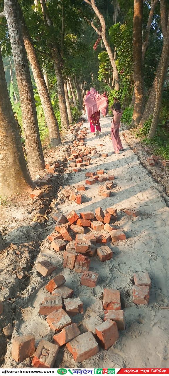 স্থানীয় বাসিন্দারা জানান, সোমবার রাতে হঠাৎ কিছু বখাটে লোকজন রাস্তাটির ইট তুলে নিয়ে যায়।
