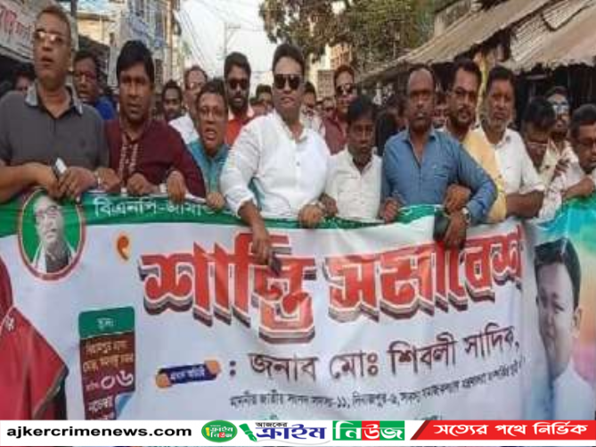 সোমবার (০৬ নভেম্বর) বিকেলে বিরামপুর উপজেলার পাইলট উচ্চ বিদ্যালয় থেকে জাতীয় সংসদ সদস্য শিবলী সাদিক এমপি’র নেতৃত্বে এক মিছিল শহরের প্রধান-প্রধান সড়ক প্রদক্ষিণ শেষে পৌর শহরের ঢাকা মোড়ে আলোচনা সভায় সমবেত হয়।