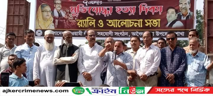 মুক্তিযোদ্ধা হত্যার মাস্টার মাইন্ড জিয়াউর রহমানের মরনোত্তর বিচারের দাবি জানিয়ে বরিশালের আগৈলঝাড়ায় আওয়ামী লীগের উদ্যাগে মুক্তিযোদ্ধা হত্যা দিবস পালিত হয়েছে। দিবসটি পালন উপলক্ষে ৭ নভেম্বর মঙ্গলবার সকাল এগারোটায় উপজেলা শহরে র্যালী ও আলোচনাসভা অনুষ্ঠিত হয়েছে। হাজার হাজার নেতা কর্মীদের সমন্বয়ে মুক্তিযোদ্ধা হত্যা দিবসের র্যালী শেষে উপজেলা আওয়ামী লীগের সভাপতি সুনীল কুমার বাড়ৈর সভাপতিত্বে দলীয় কার্যালয়ের সামনে দিবসের ঐতিহাসিক তাৎপর্য তুলে ধরে বক্তব্য রাখেন বরিশাল জেলা আওয়ামী লীগের নেতা ও আগৈলঝাড়া উপজেলা চেয়ারম্যান বীর মুক্তিযোদ্ধা আব্দুর রইচ সেরনিয়াবাত, উপজেলা আওয়ামী লীগের সাধারণ সম্পাদক আবু সালেহ মোঃ লিটন সেরনিয়াবাত।