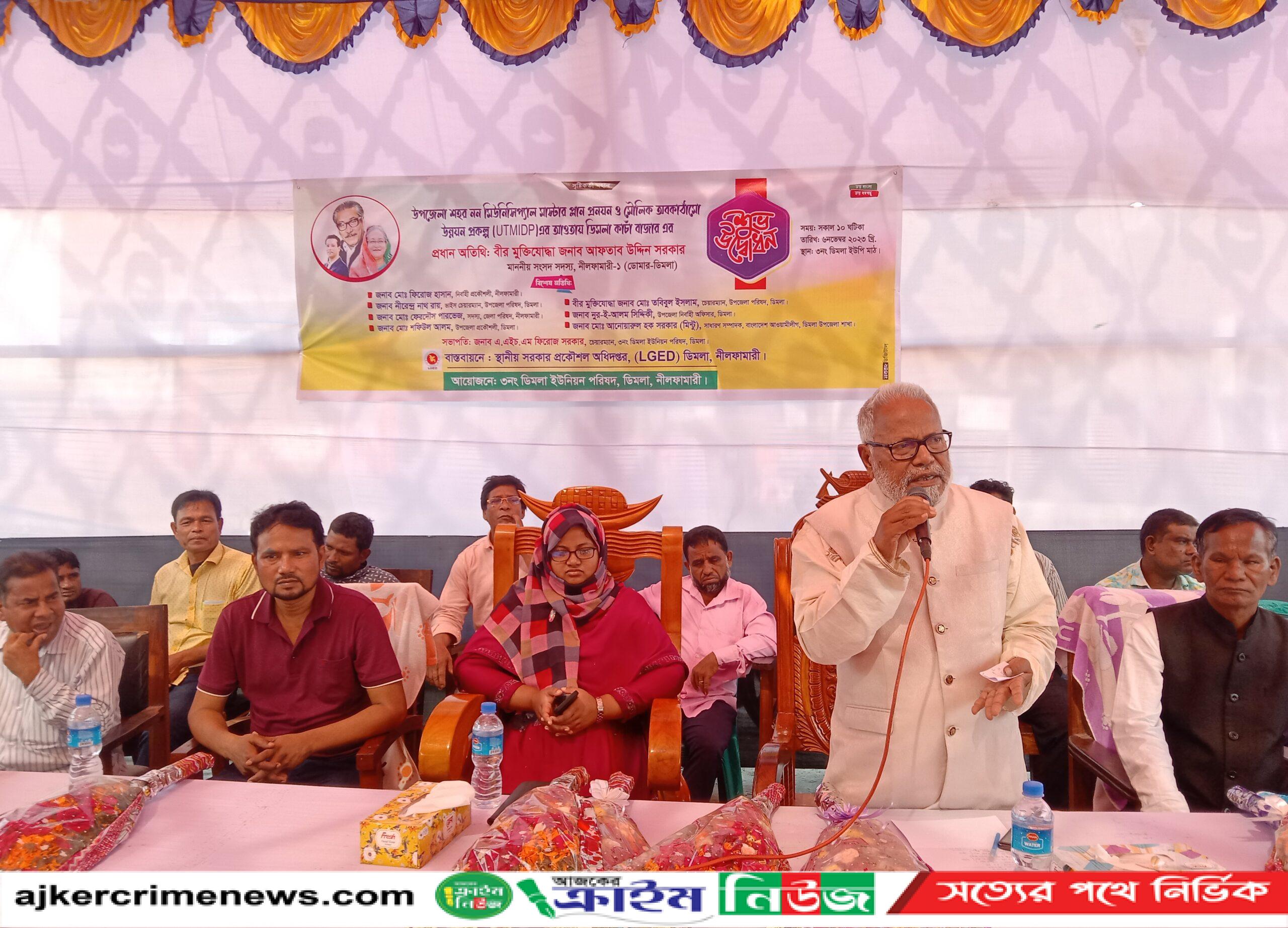 নীলফামারী-১(ডোমার ডিমলা)আসনের সংসদ সদস্য বীর মুক্তিযোদ্ধা আলহাজ্ব আফতাব উদ্দিন সরকার।বিশেষ অতিথি হিসেবে উপস্থিত ছিলেন, উপজেলা নির্বাহী কর্মকর্তা নূর-ই-আলম সিদ্দিকী,সহকারী কমিশনার(ভূমি)ফারজানা আখতার,উপজেলা পরিষদের ভাইস চেয়ারম্যান নিরেন্দ্রনাথ রায়,জেলা পরিষদ সদস্য ও উপজেলা যুবলীগের যুগ্ন আহ্বায়ক ফেরদৌস পারভেজ,উপজেলা প্রকৌশলী সফিউল আলম।সদর ইউনিয়ন পরিষদ চেয়ারম্যান এ এইচ এম ফিরোজ সরকারের সভাপতিত্বে ও উপজেলা ছাত্রলীগের আহ্বায়ক আবু সায়েম সরকারের সঞ্চালনায় এ সময় বক্তব্য দেন,উপজেলা আওয়ামী লীগের দপ্তর সম্পাদক জহুরুল ইসলাম ভূঁইয়া,দোকান মালিক সমিতির সাধারণ সম্পাদক আলী আহম্মদ মুর্তজা লেলিন, উপজেলা স্বেচ্ছাসেবক লীগের সদস্য সচিব উত্তম কুমার রায় প্রমুখ।