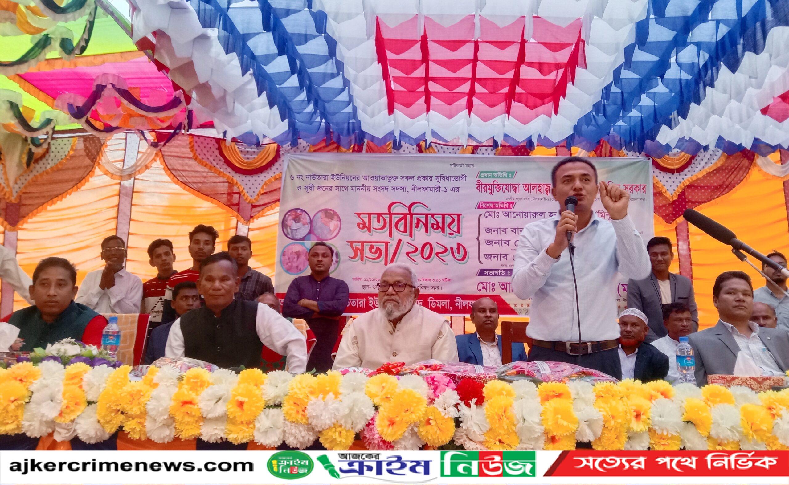 শনিবার(১১ নভেম্বর)বিকেলে উপজেলার নাউতারা ইউনিয়ন পরিষদের আয়োজনে উক্ত ইউনিয়ন পরিষদ সংলগ্ন মাঠে এই মতবিনিময় সভা অনুষ্ঠিত হয়।এতে প্রধান অতিথি হিসেবে উপস্থিত ছিলেন, নীলফামারী-১(ডোমার-ডিমলা)আসনের সংসদ সদস্য বীর মুক্তিযোদ্ধা আলহাজ্ব আফতাব উদ্দিন সরকার।