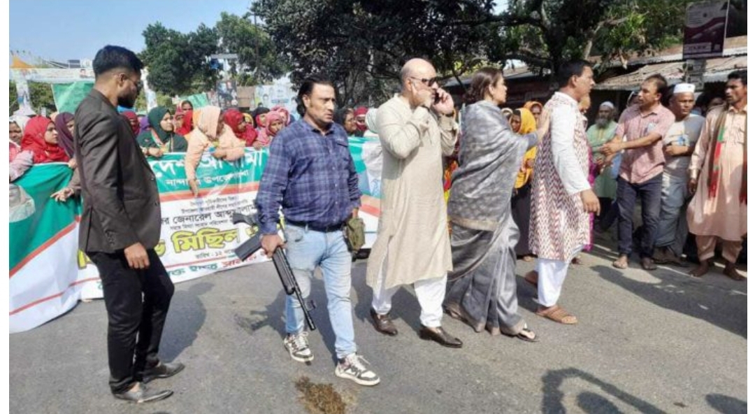 নৈরাজ্য সৃষ্টিকারীদের বিরুদ্ধে এবং উপজেলা আওয়ামী লীগের সভাপতির বিরুদ্ধে মিথ্যা সংবাদ পরিবেশনা ও অপপ্রচারের প্রতিবাদে বিক্ষোভ মিছিল ও সমাবেশটি করা হয়। সেই মিছিলের অগ্রভাগে শটগানসহ দেখা যায় অস্ত্রধারী মো. কামরুজ্জামানকে। তিনি বাগেরহাটের মোড়েলগঞ্জ উপজেলার মো. দেলোয়ার হোসেনের ছেলে। কামরুজ্জামান অবসরপ্রাপ্ত মেজর জেনারেল আব্দুস সালামের জামাতা জাহিদ হাসান প্রিতমের গানম্যান।