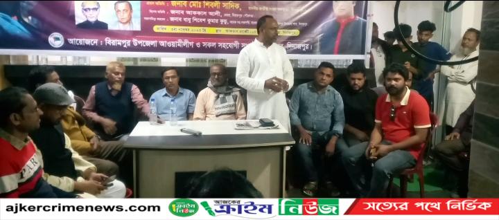এসময় সাবেক ছাত্রনেতা প্রীতিময় হোসেন পলাশ এর সভাপতিত্বে বক্তব্য রাখেন বিরামপুর উপজেলা আওয়ামী লীগের সাবেক সিনিয়র সহ-সভাপতি শিবেশ কুন্ডু,সাবেক সাংগঠনিক সম্পাদক আব্দুর রাজ্জাক মাস্টার, নাড়ুগোপাল কুন্ডু, উক্ত আলোচনা সভায় উপস্থিত ছিলেন বিরামপুর উপজেলা যুবলীগের সাবেক সাধারণ সম্পাদক মাহাবুব আলম বকুল, যুবলীগের সিনিয়র সহ-সভাপতি আনোয়ার হোসেন টিটু, দিওড় ইউপি চেয়ারম্যান আব্দুল মালেক মন্ডল,,বিরামপুর উপজেলা স্বেচ্ছাসেবক লীগের সাবেক সাধারন সম্পাদক বেলাল হোসেন, ছাত্রলীগের সভাপতি আব্দুর রাজ্জাক, যুগ্ন সাধারন সম্পাদক মুরাদ হোসেন,সাবেক ছাত্রনেতা ফারুক হোসেন, সাবেক পৌর স্বেচ্ছাসেবক লীগের সাধারণ সম্পাদক উত্তম কুমার, সাবেক ছাত্রনেতা মিজানুর রহমান,, প্রিন্ট ও বিভিন্ন ইলেকট্রনিক্স মিডিয়ার সাংবাদিক বৃন্দুসহ আওয়ামী লীগের অঙ্গ সহযোগী সংগঠনের সকল নেতাকর্মীরা উপস্থিত ছিলেন।