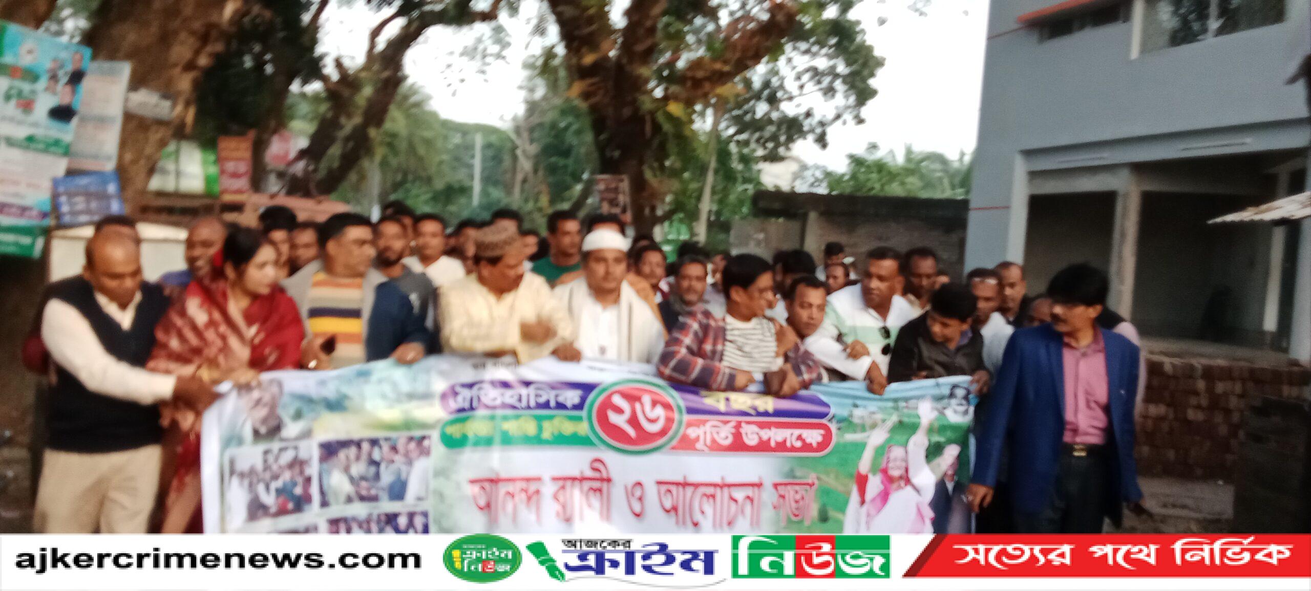 শনিবার বিকাল ৪টায় উপজেলা আওয়ামী লীগের উদ্যোগে আনন্দ র্যালি ও আলোচনা সভা অনুষ্ঠিত হয়েছে। দলীয় নেতা-কর্মী ও সমর্থক অংশ গ্রহণে বিশাল একটি বর্ণাঢ্য আনন্দ র্যালী বের হয়ে উপজেলার স্টীল ব্রীজ সড়ক প্রদক্ষিণ শেষে দলীয় কার্যলয়ে গিয়ে শেষ হয়।