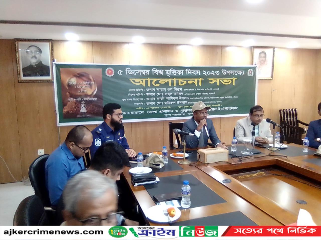 র্যালি শেষে জেলা প্রশাসনের সম্মেলন কক্ষে কৃর্ষি সম্প্রসারন অধিদপ্তরের উপ পরিচালক মো:মনিরুল ইসলামের সভাপতিত্বে আলোচনা সভা অনুষ্ঠিত হয়েছে। আলোচনা সভায় প্রধান অতিথি ছিলেন অতিরিক্ত জেলা প্রশাসক মো: রুহুল আমিন। অত্র অনুষ্ঠান যৌথ ভাবে আয়োজন করে জেলা প্রশাসন ও কৃষি মন্ত্রনালয়ের মৃত্তিকা সম্পদ উন্নয়ন ইনস্টিটিউট।