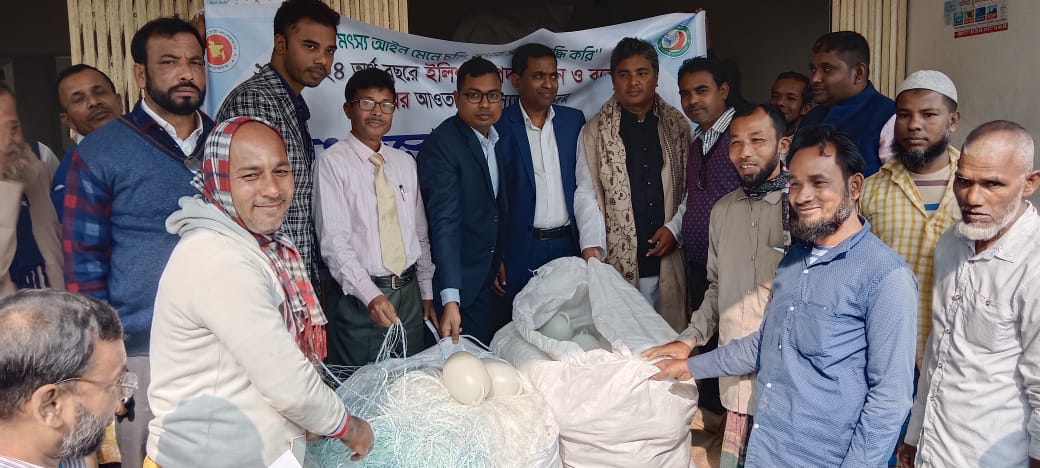 বাবুগঞ্জ (বরিশাল) প্রতিনিধিঃ বরিশালের বাবুগঞ্জে " মৎস্য আইন মেনে চলি‚ মৎস্য সম্পদ বৃদ্ধি করি" এ প্রতিপাদ্য বিষয়কে সামনে রেখে ২০২৩-২০২৪ অর্থ বছরে দেশীয় প্রজাতির মাছ এবং শামুক সংরক্ষণ ও উন্নয়ন প্রকল্পের আওতায় ইউনিয়ন পর্যায়ে উদ্ভুদ্ধকরণ সভা ও জাল বিতরণ করা হয়েছে।